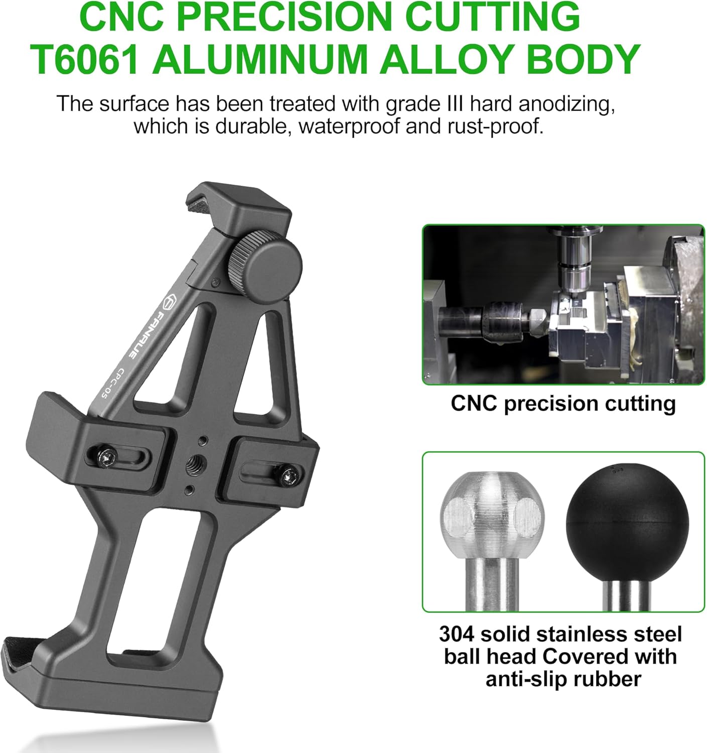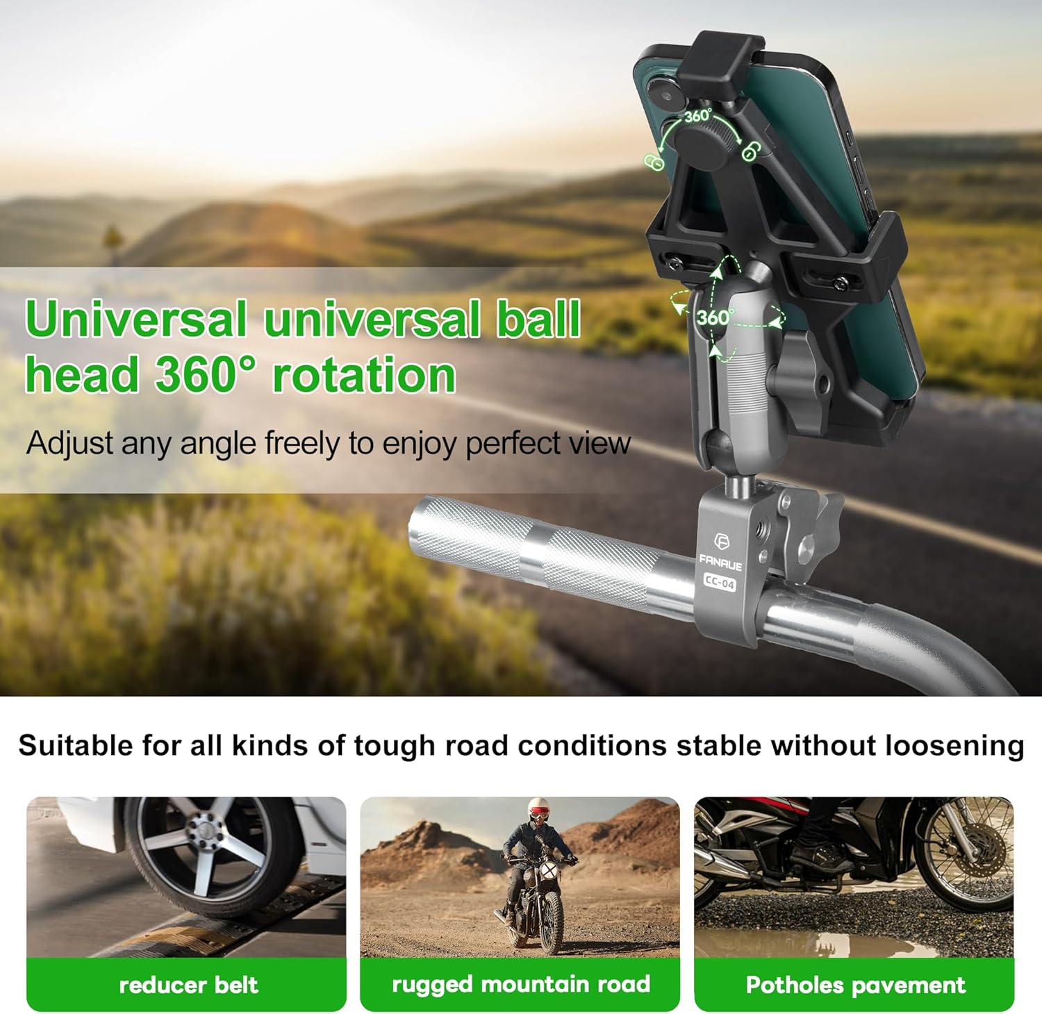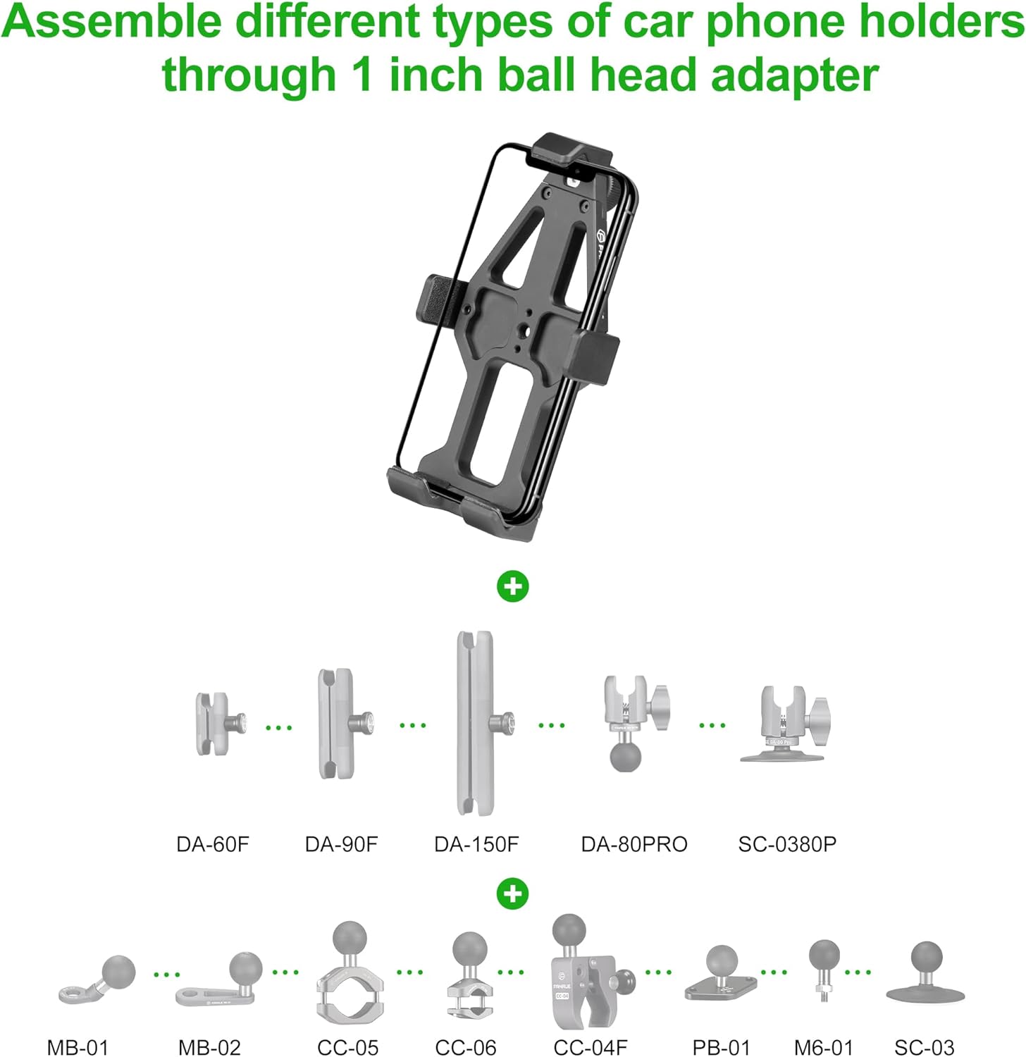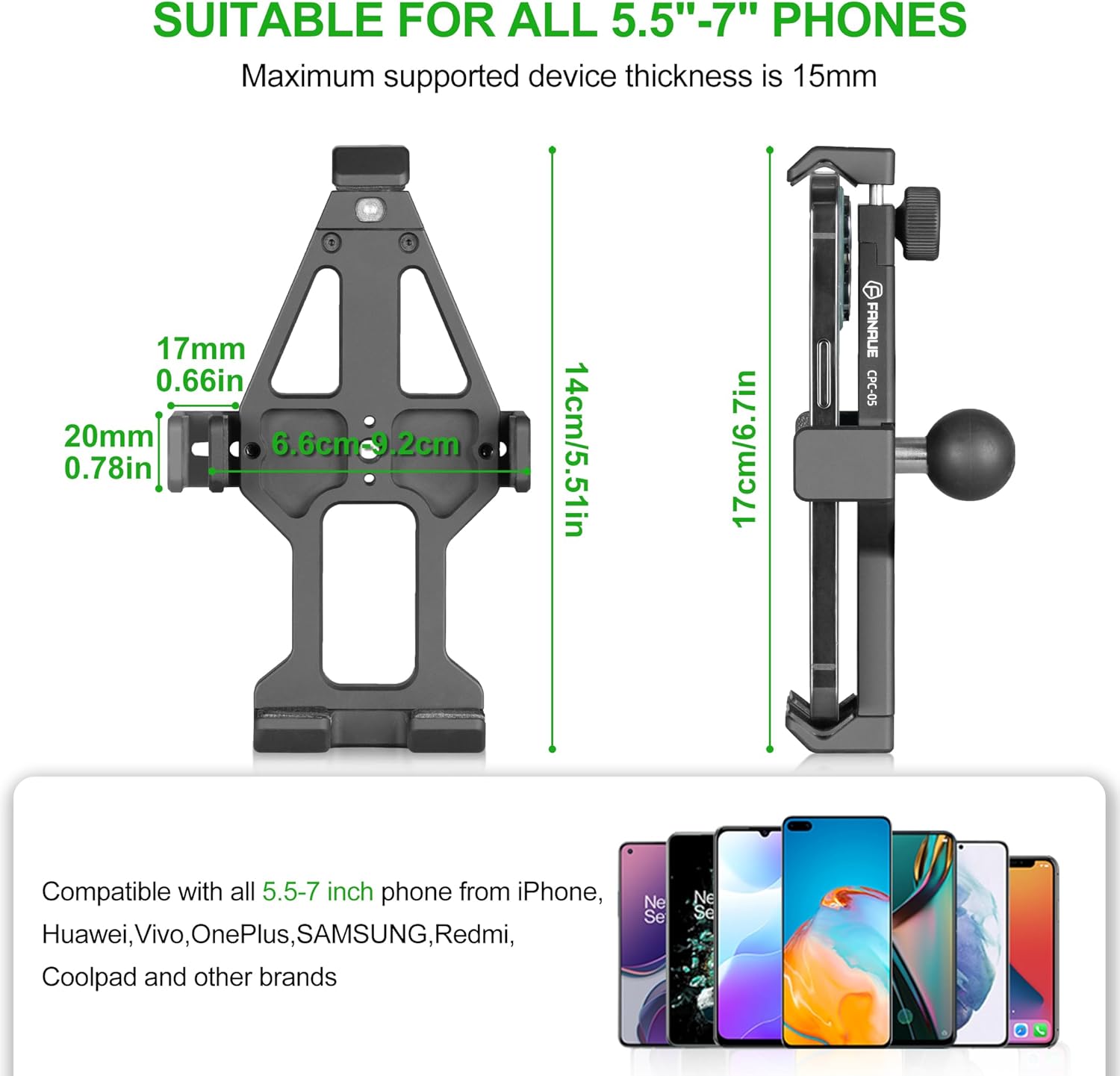 FANAUE CPC-05 Cell phone holder with 1 inch ball adapter anti-Loose knob device double protection for your smartphone add extra security, built-in non-slip rubber pads prevent phone scratches and provide greater friction to ensure that your device is securely fastened to motorcycle mount even at high speeds on bumpy roads.