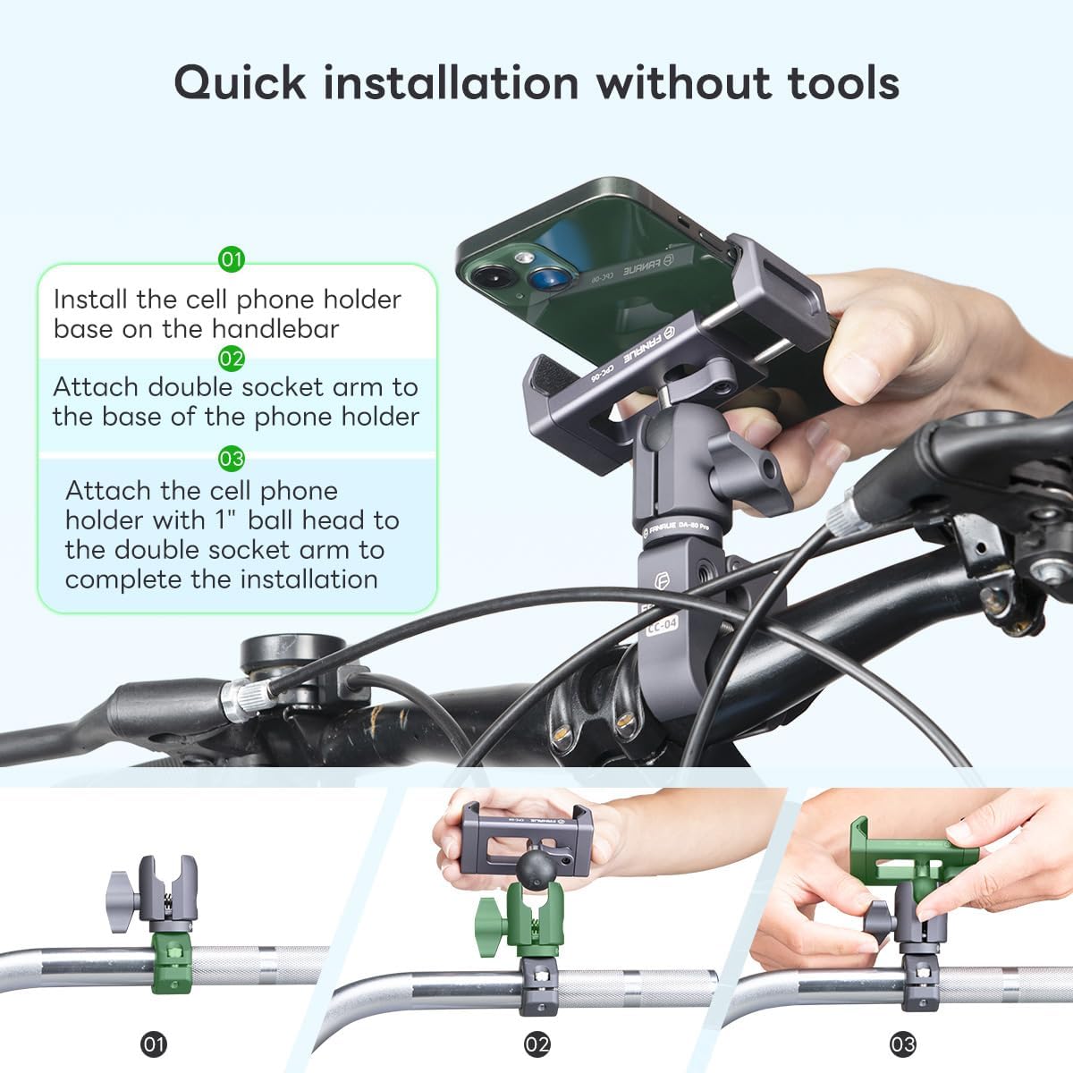 🎄【Wide Compatibility】The phone holder with 1 inch ball head adapter can be used for bicycles, motorcycles, ATV/UTV, scooters, strollers, treadmills and other vehicles, suitable for 6″-8.5″ (72mm-100mm) smartphones, support device thickness of 14mm, such as: iPhone 14 13 12 11 ProMax, Samsung Galaxy S21 S22 S21+ S22+, OnePlus Ace Ace Pro 10 10Pro, Google Mobile, Huawei and other cell phones.