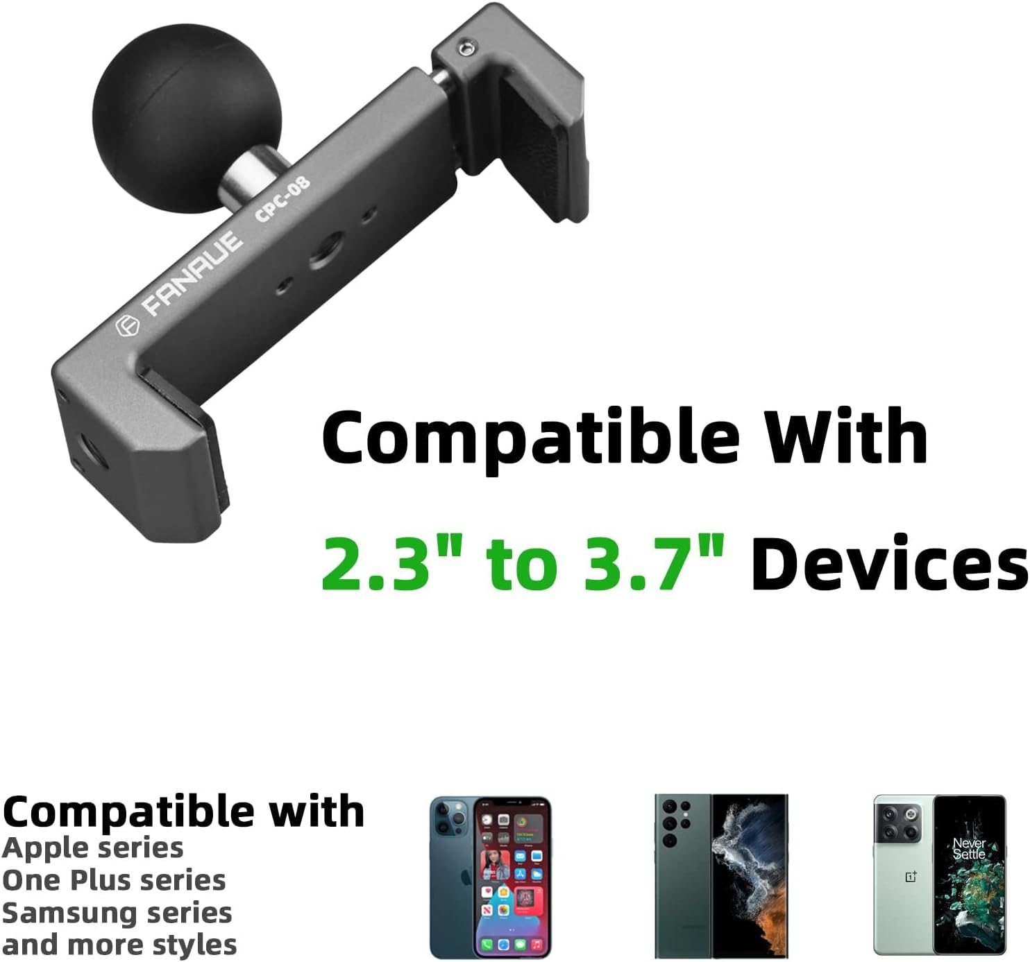 The phone holder width is 2.3″ (61mm) to 3.7″ (90mm), compatible with most mobile phones, such as iPhone 14 13 12 11 Pro ProMax, Samsung Galaxy S21 S22 S21+ S22+, OnePlus Ace Ace Pro 10 10Pro, Google Phone, Huawei mobile phones and other mobile phones.