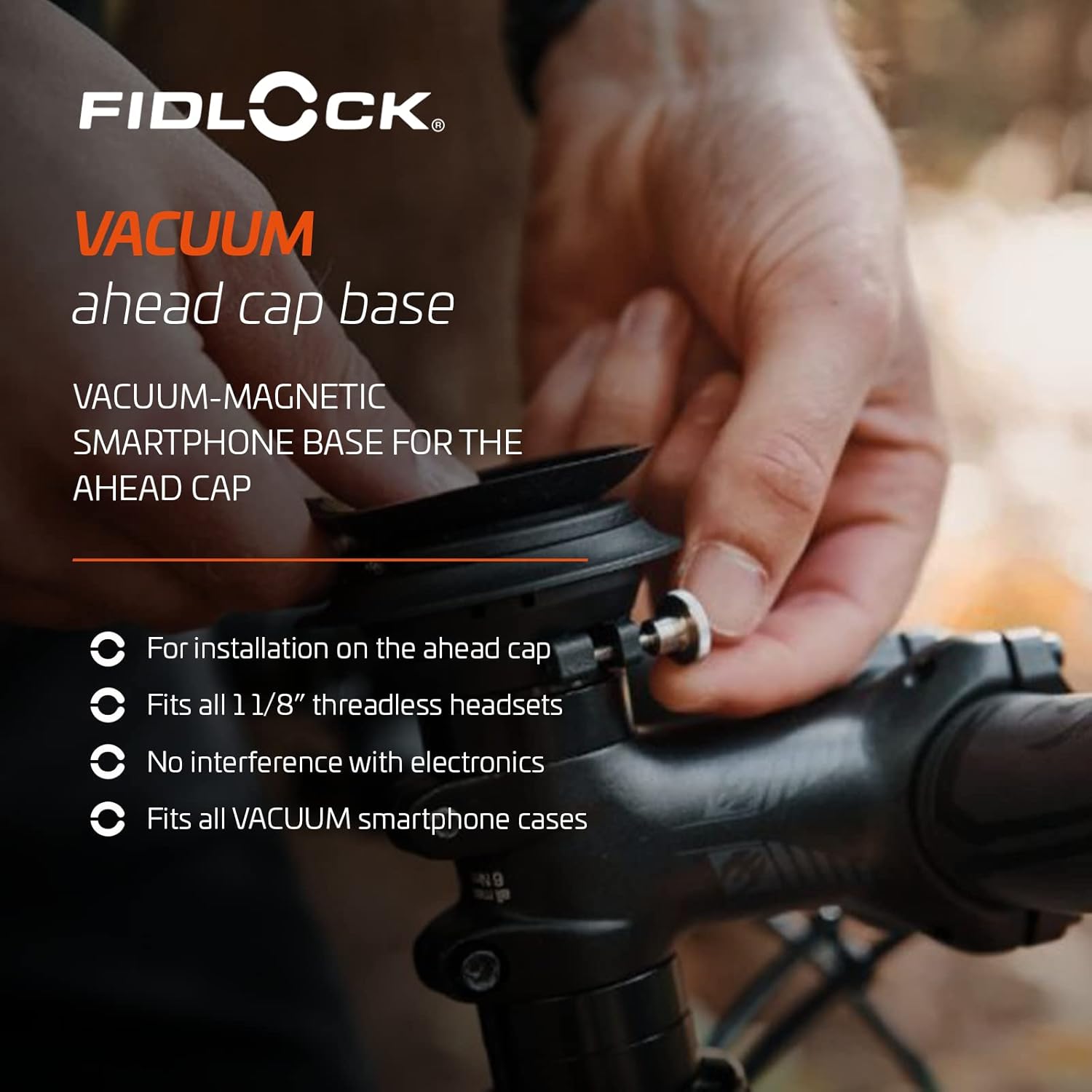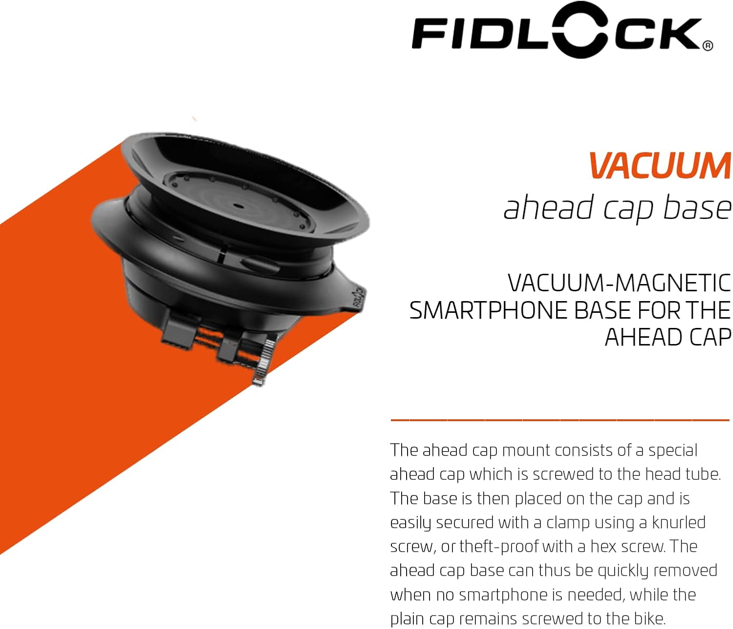 FIDLOCK Vacuum Ahead Cap Base – Bike Cellphone Holder Stem Cap Base Mount | Bicycle Smartphone Clamp Including Knurled and Allen Screw – Fits All Vacuum Smartphone Cases