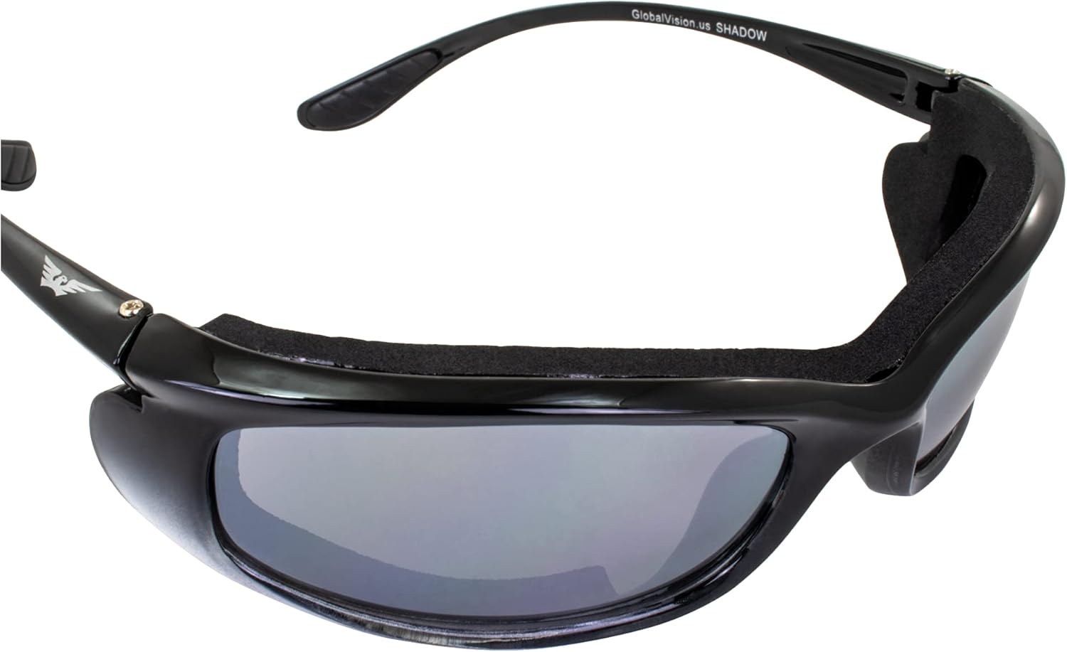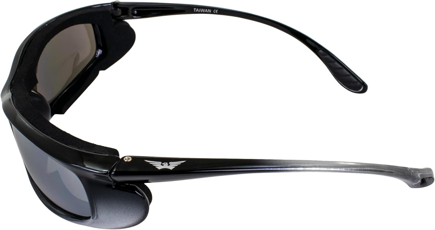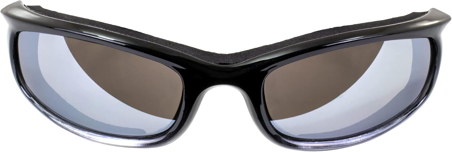 Global Vision Shadow Foam-Padded Motorcycle Sunglasses for Men & Women Shatterproof Polycarbonate Flash Mirror Lens w/Two-Tone Black and Silver Frame