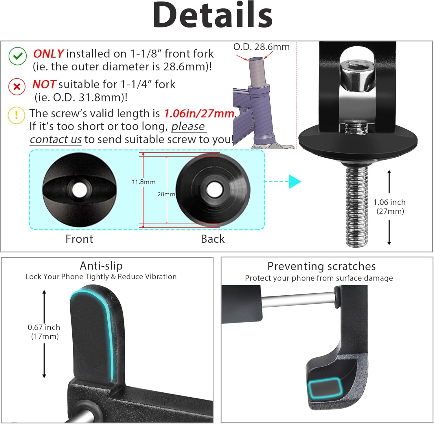 【Mounted on Stem】By replacing the headset top cap and bolt, our bike cell phone holder can be mounted directly on the stem without crowding your bike handlebar.