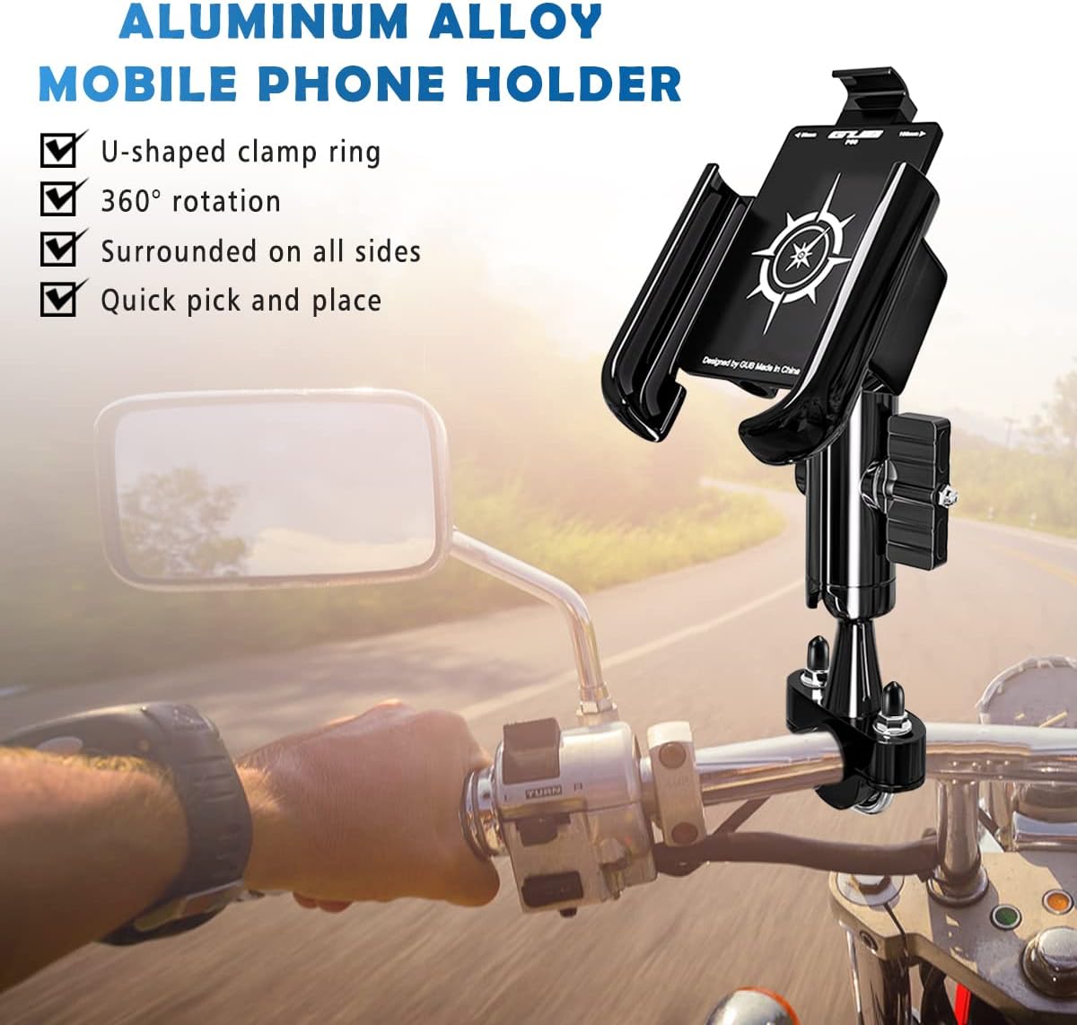 GUB Metal Motorcycle Phone Mount on Φ0.6-1.4″ Handlebar, Aluminum Bike Phone Mount for Harley ATV Electric Scooter Dirt Bikes, Adjustable Road Mountain Bicycle iPhone Holder for 4″-7.2″ Cell Phones