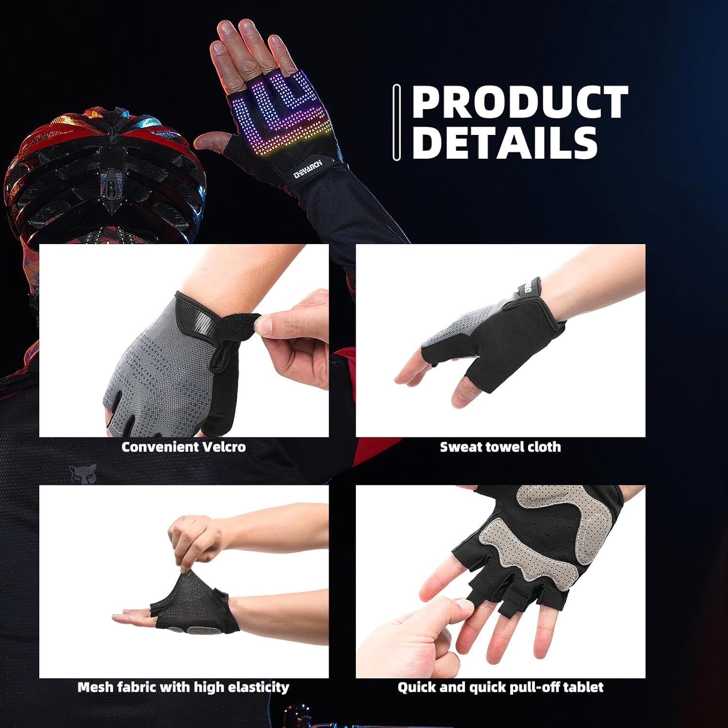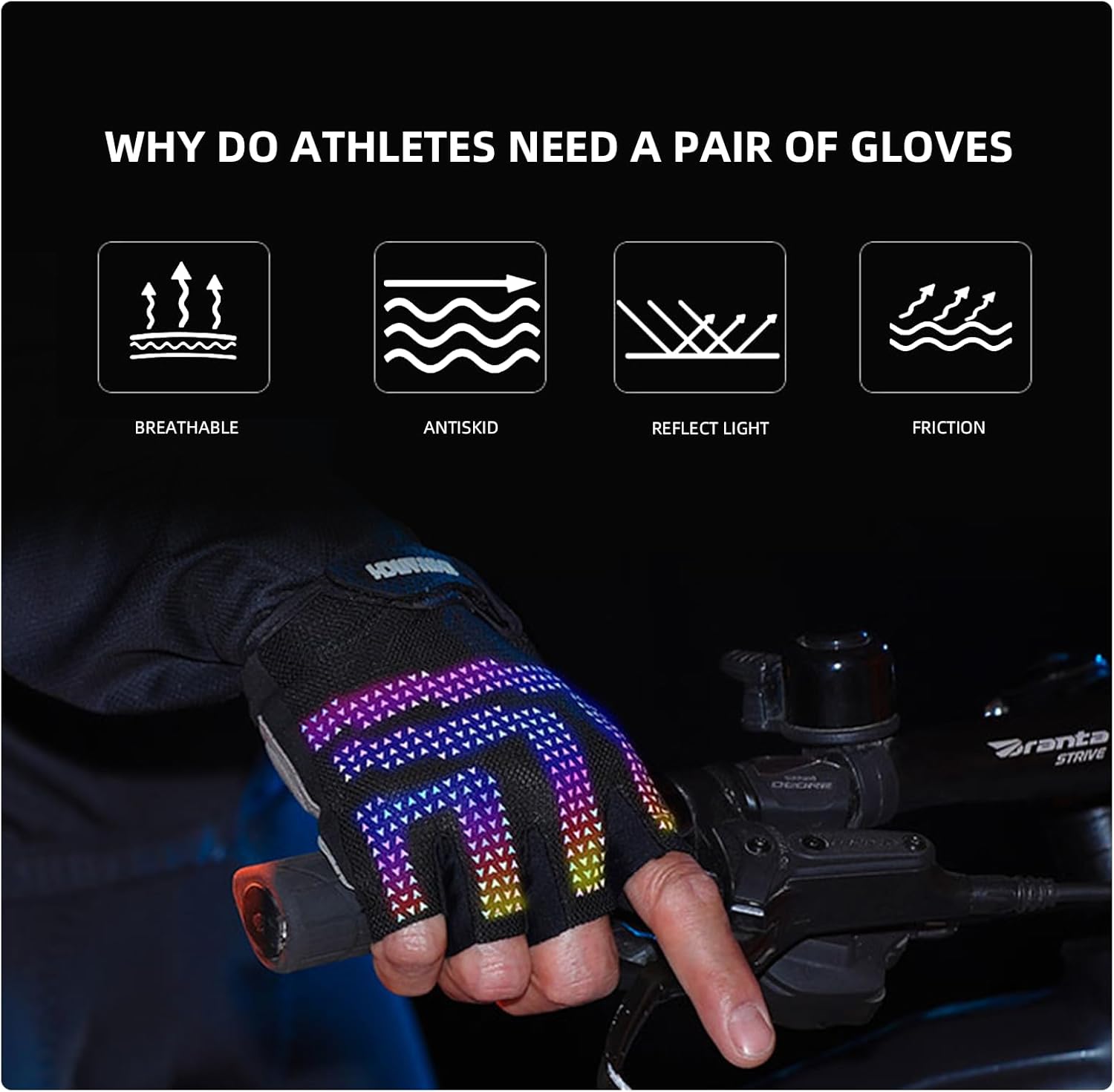Comfortable and breathable: The back is designed with butterfly net fabric, which is not tight and breathable, and the thumb contains absorbent cloth to wipe sweat easily. It can make your hands completely relaxed and comfortable during cycling. More with bright reflective material, safer riding at night.