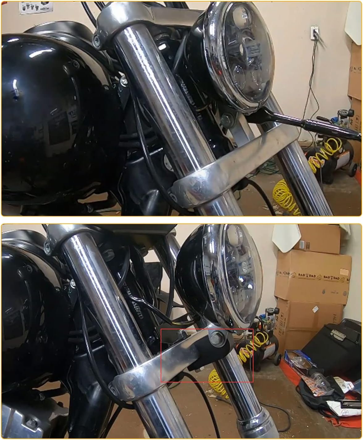 Fitment: The headlight block fits for Harley Davidson Dyna Fork T-Sport FXDL FXDF FXDB FXDWG, and it fits motorcycles with a 39mm or 49mm front end with a fairing mounted