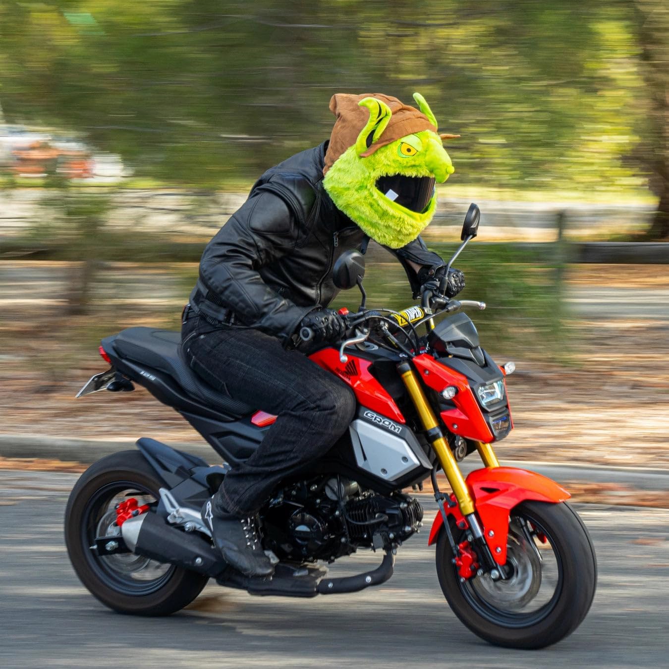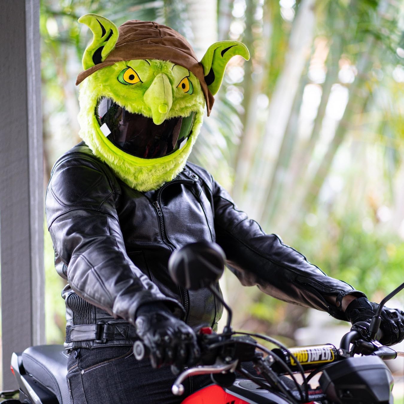 Children will laugh, heads will turn and you’ll make everyone a little happier when you rider past wearing this goblin helmet cover. Everywhere you ride people will laugh, wave, give you thumbs up and take pictures. Don’t be surprised if you find yourself staring on multiple social media pages after going for a ride wearing this fun helmet cover.