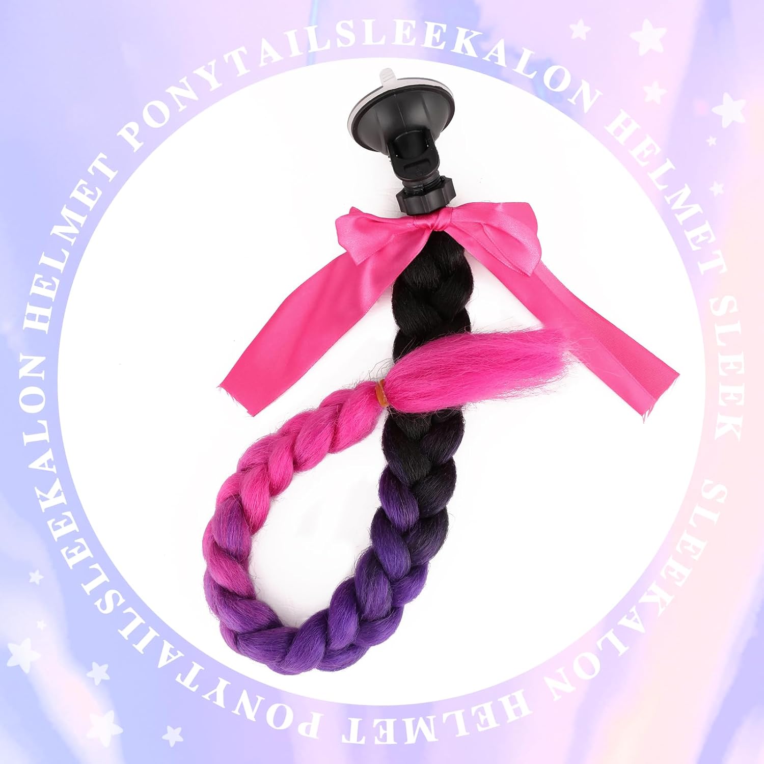 Helmet Pigtail Motorcycle Helmet Braids with Detachable Suction Cup with Bowknot Bicycle Helmet Ponytails Hair Tails Decoretion