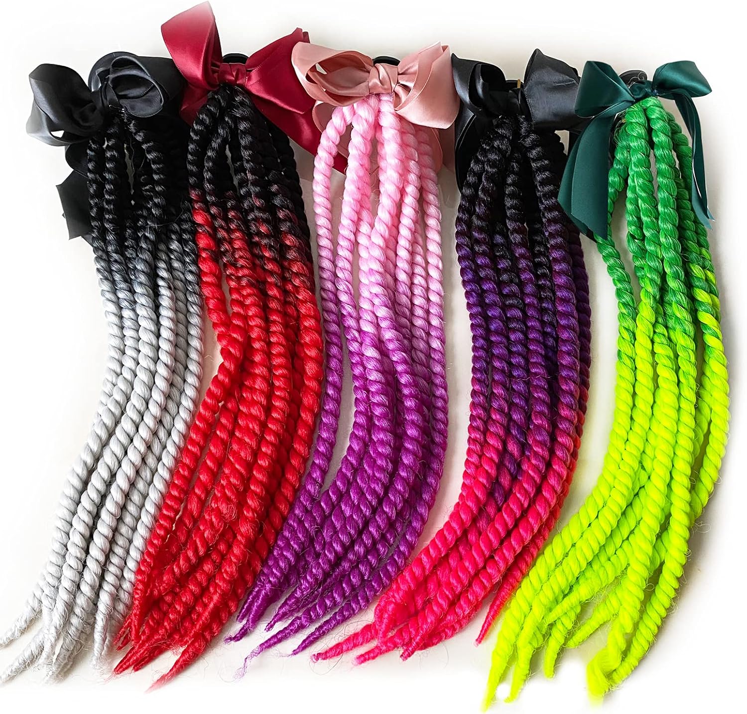Helmet Pigtails for Motorcycle Helmet Ponytail Twist Wavy Hair 22inch Ombre Pink to Purple