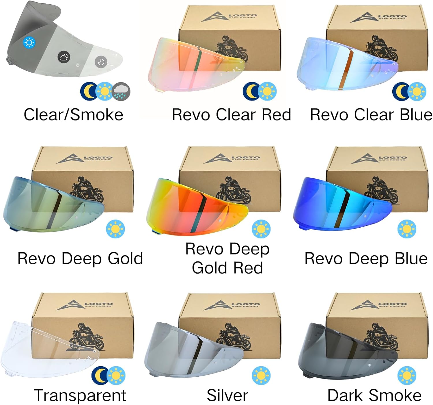 Logto Is A Brand That Specializes In Riding Accessories.The Main Products Are Motorcycle Helmet Replacement Visor, Visor Anti Fog Film, Motorcycle Helmet.Our Motorcycle Helmet Visors Are Available In A Variety Of Colors.The Lenses Are Made Of High Quality Pc Material. Impact & Crush Resistant, Opens & Closes Smoothly.