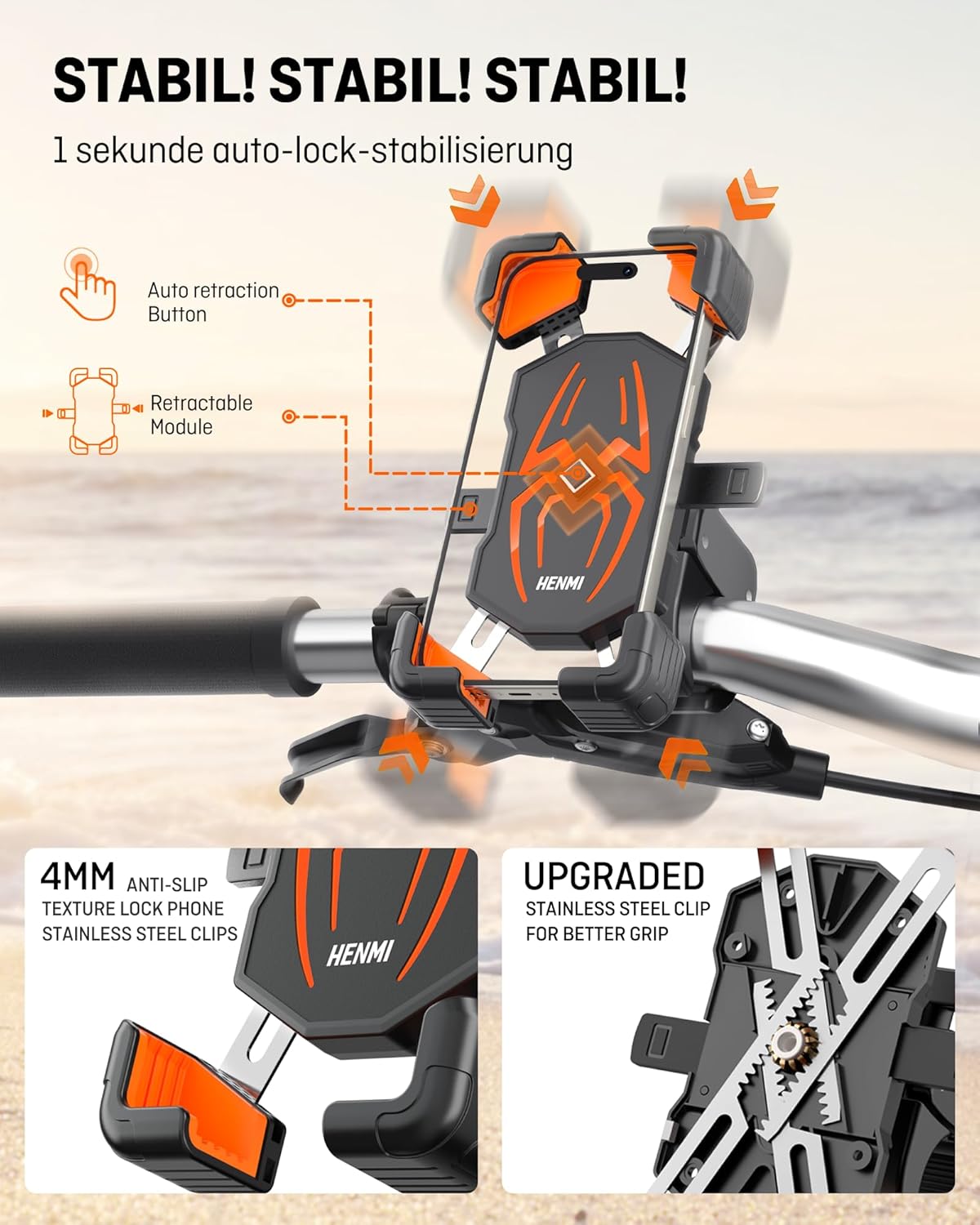 EASY ONE-HAND OPERATION: It takes only 1 second to put your cell phone into the motorcycle cell phone holder/bike cell phone holder without any complicated operation. This makes our motorcycle phone mounts even more convenient to use while riding a bike, freeing up your other hand to operate the bike’s controls, as well as quickly releasing your phone to answer calls or take photos on the go.
