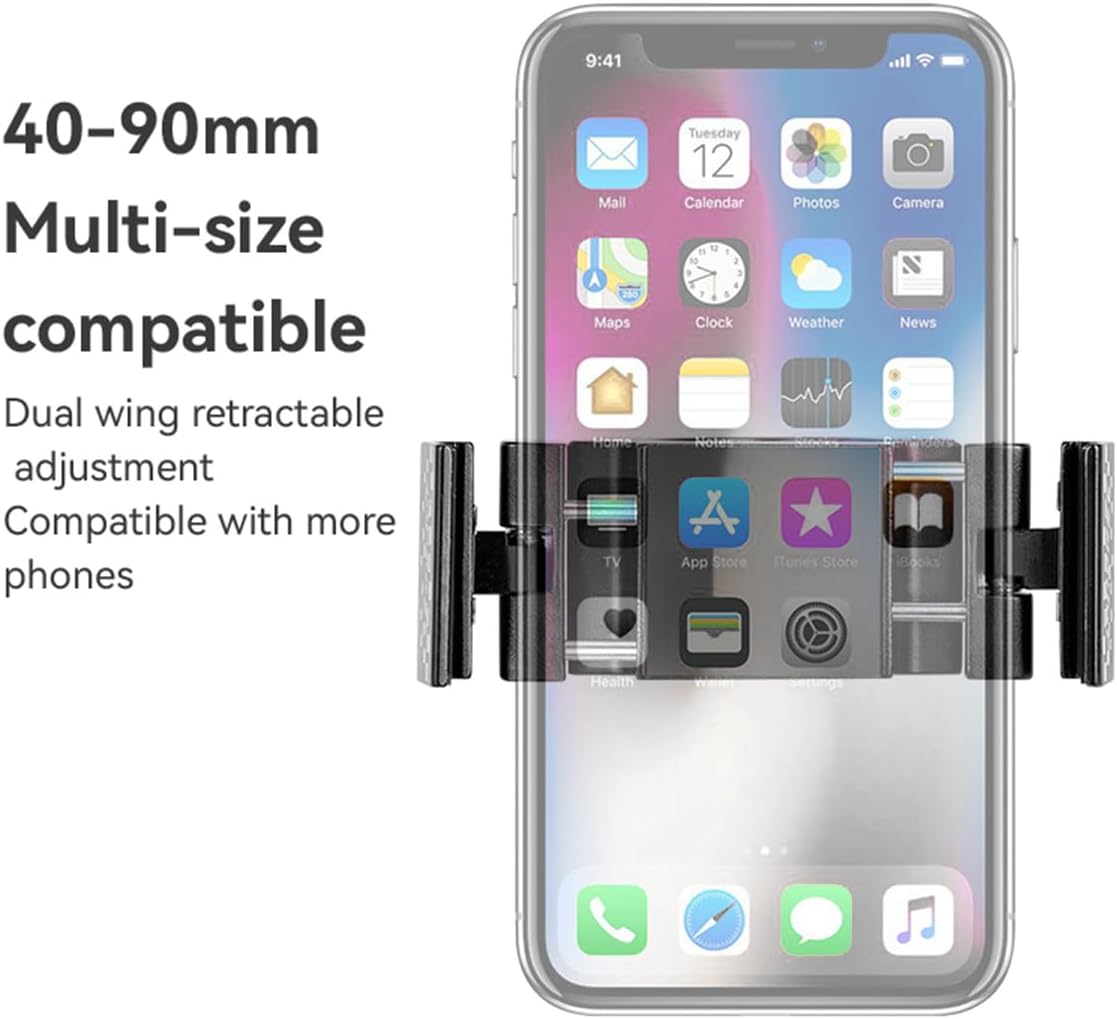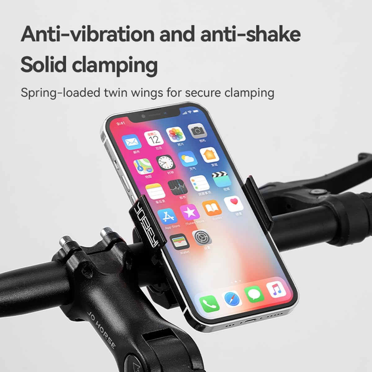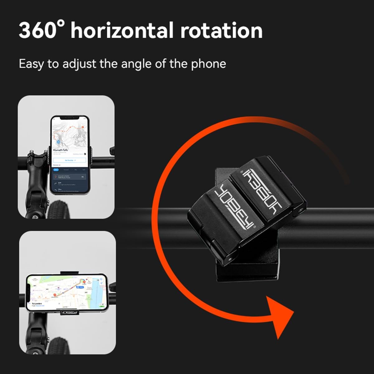 EASY TO USE: Simply open the holder’s clip, place the phone in the center of the clip, and pull the clip so that it grips the phone.Very strong clamping force, very stable, no matter on the top of the steps or on the uneven mountain road, it will not loose and fall.This cell phone holder can rotate 360 degrees,Easy to adjust the cellphone to horizontal or vertical screen.