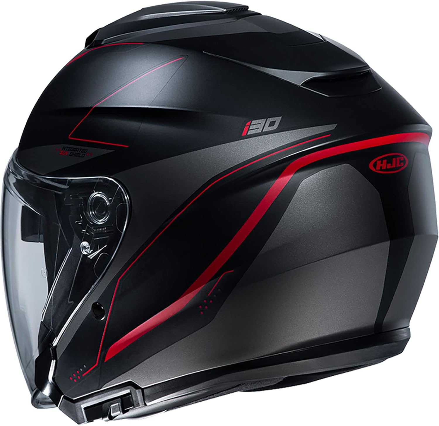 The i30 was created from years of design and research, bringing the best open face helmet to the market. It starts with the next generation face shield. The shield also uses the tool-less, quick release base plate system for easy to use install/removal. We also updated the internal sun shield with an increased coverage area than our previous model. The 3 top vent intake system provides maximum airflow into the helmet, while the rear exhaust spoiler creates a vacuum effect flushing out the heat. D.O.T. Approved and Meets FMVSS 218 Standard