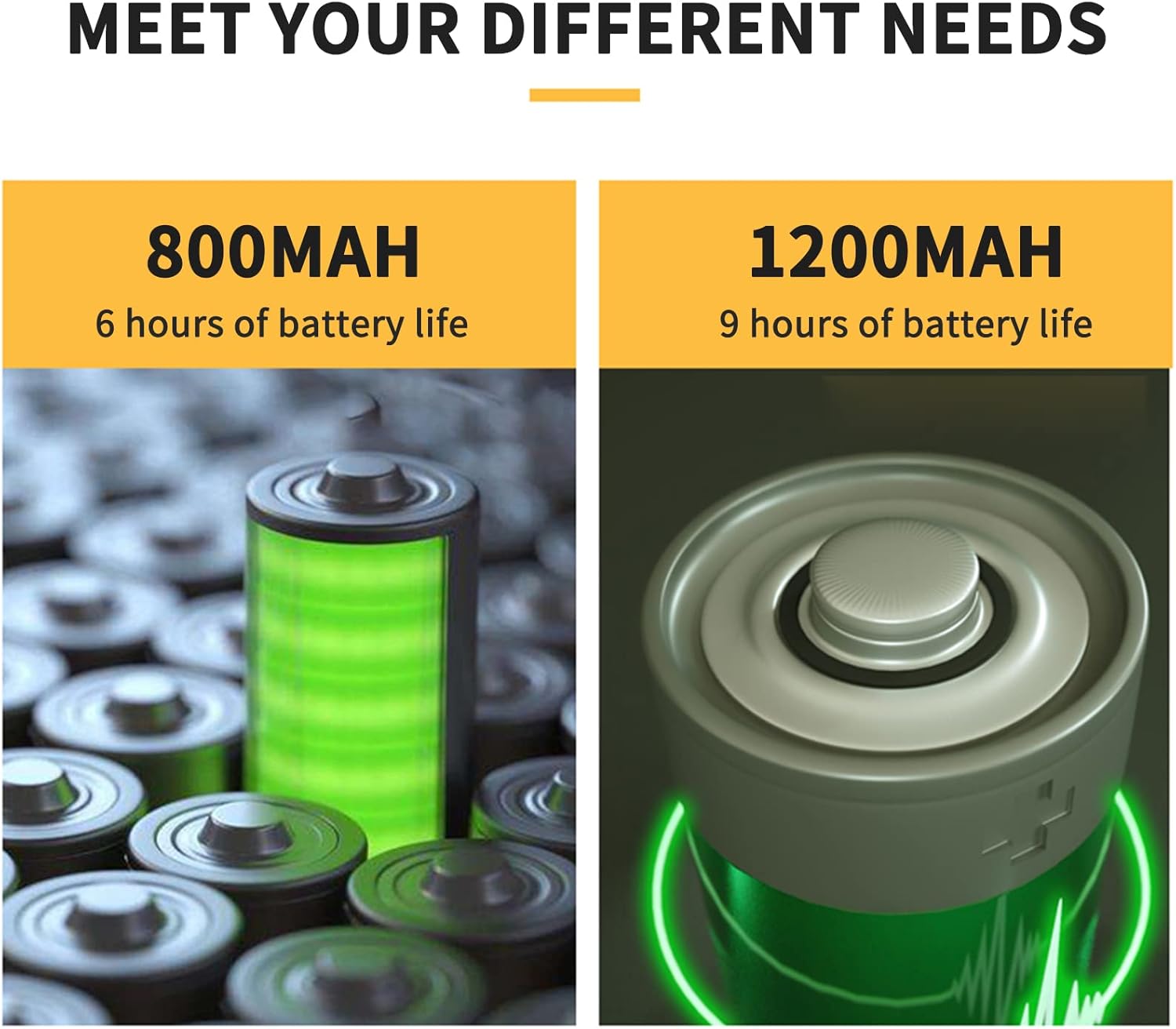 800 mAh, 1200 mAh battery capacity is optional to meet different needs.