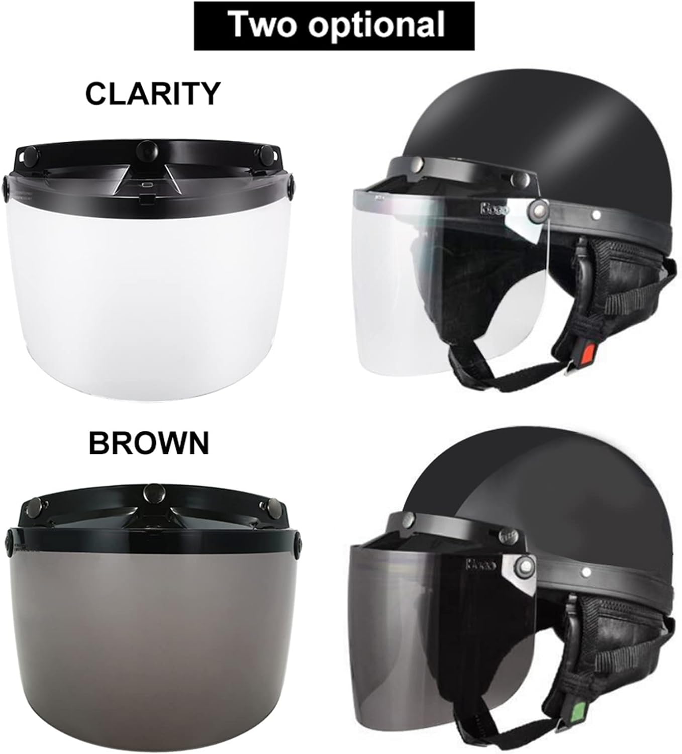 HUIOP Visor Shield Lens,Universal 3 Snap Flip Up Visor Shield Lens for Retro Open Face Motorcycle Helmet