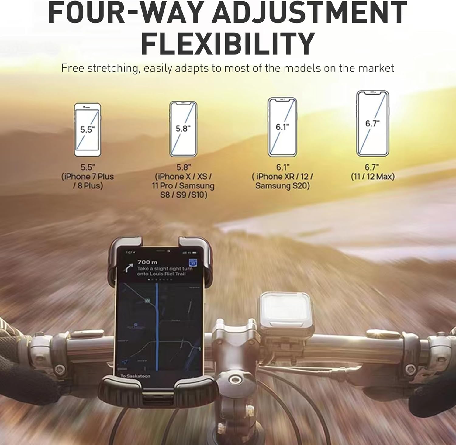 【Wide Compatibility】Universal bike phone mount for 4.7 and 6.8 inches, such as iPhone 15, iPhone 15 Plus, iPhone 15 Pro, iPhone 15 Pro Max, iPhone 14 Pro Max, iPhone 13 Pro Max, Mini Xs XR X8 Plus 7 6s 6, Galaxy S10 S9 S8, Note 9 8 7, Huawei and other Android phones.