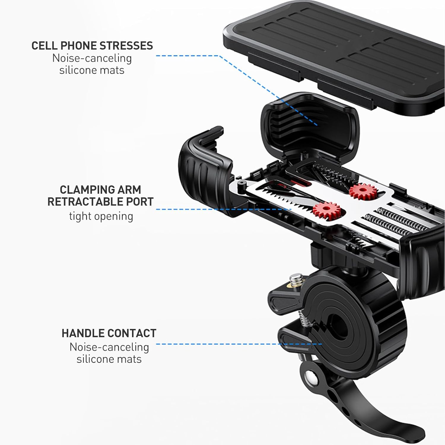 【 Adjustable Features】Our bike phone holder features a special 360-degree rotating knuckle ball that allows you to adjust the bike phone holder at virtually any angle during your ride.