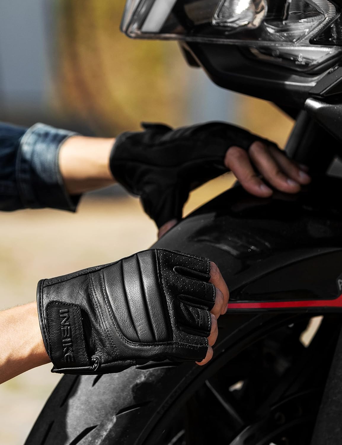 INBIKE Fingerless Goatskin Leather Motorcycle Gloves, Breathable Motorbike Gloves for Summer Large