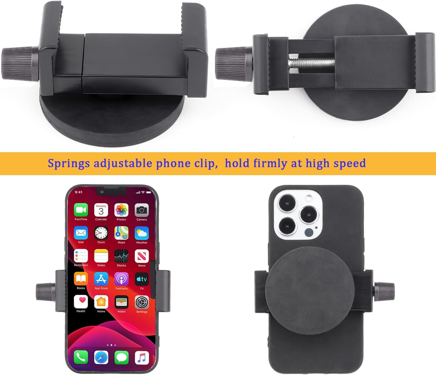 【Clamped Tighten】:Our phone clip are ABS and industrial springs material,equipped with built-in anti-skid rubber pad,phone clip can be adjusted from 2.1 to 4.2 in (3.5 ~7.5” phone diagonal screen) ,the cellphone was clamped tightly when adjustable button was locked,phone doesn’t slip from clip during shaking and bumping.