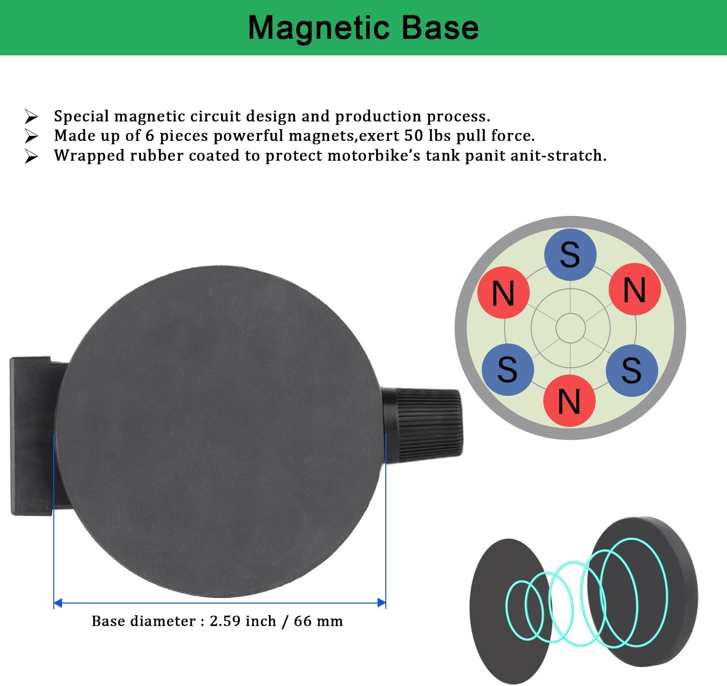 Magnetic Motorcycle Phone Holder, Strong Magnetic Attracts Tank, Non-Slip & Anti-Scratch, Compatible with 3.5-7.5″ iPhones/Nexus/HTC/LG