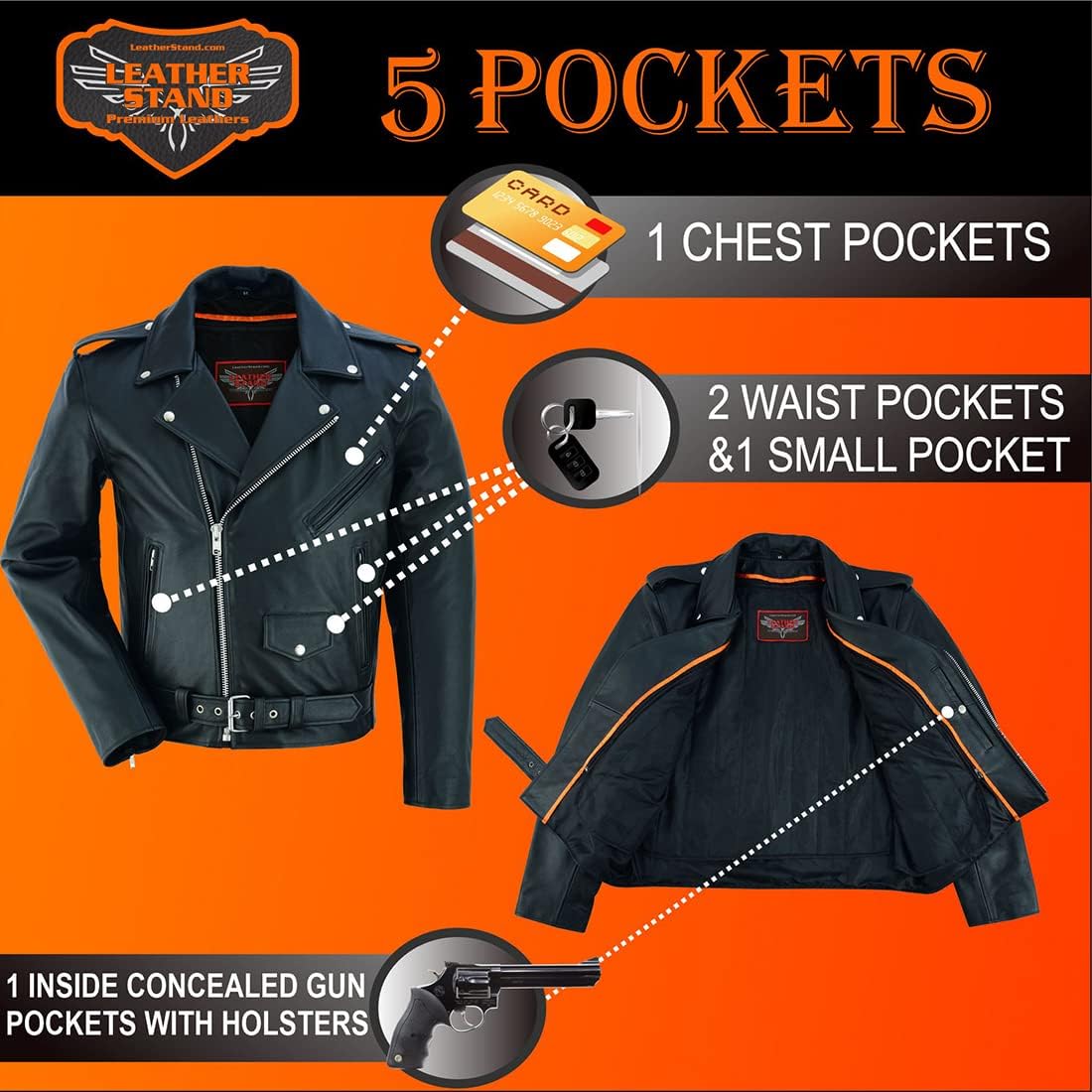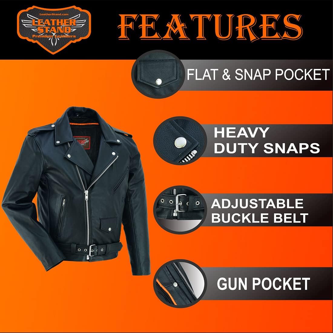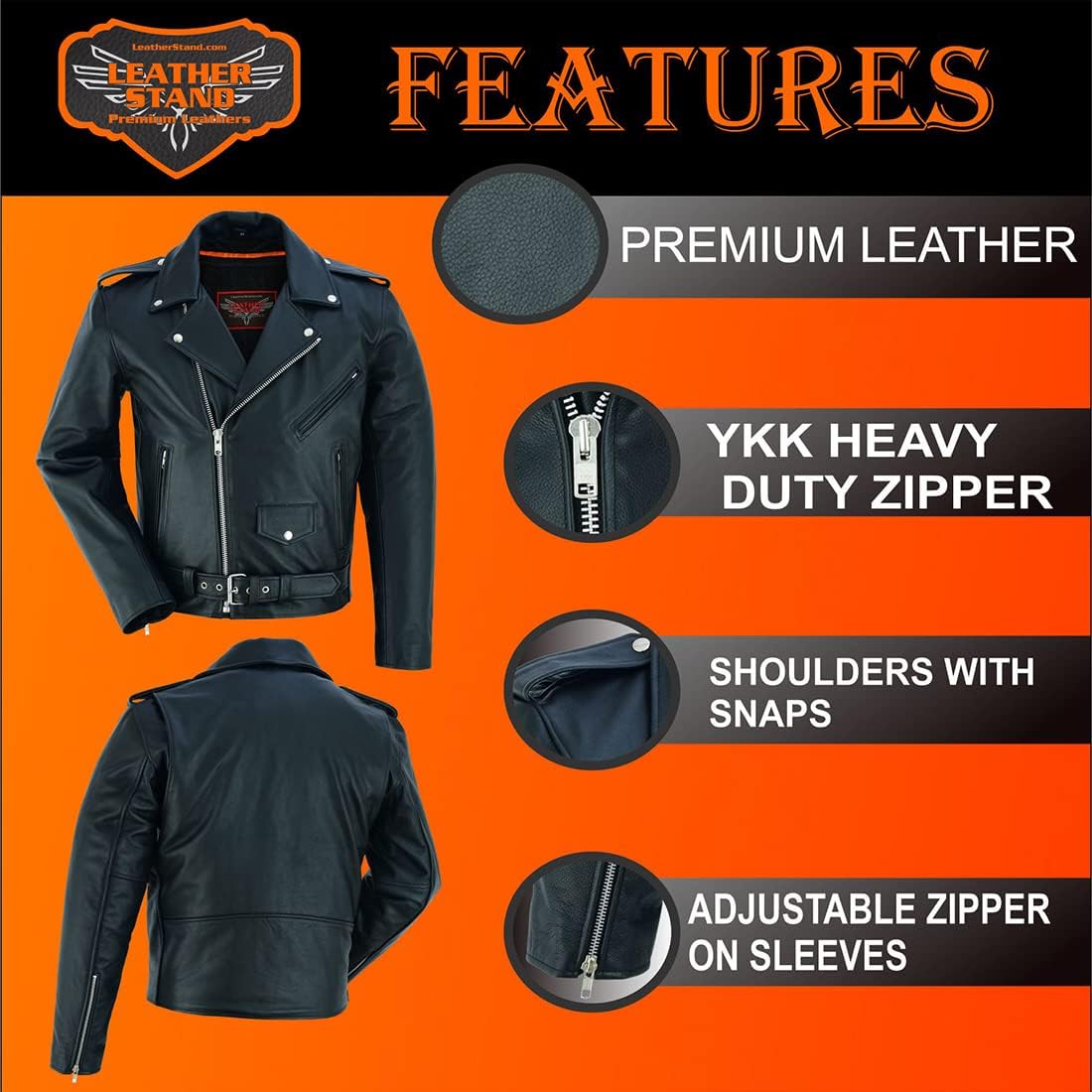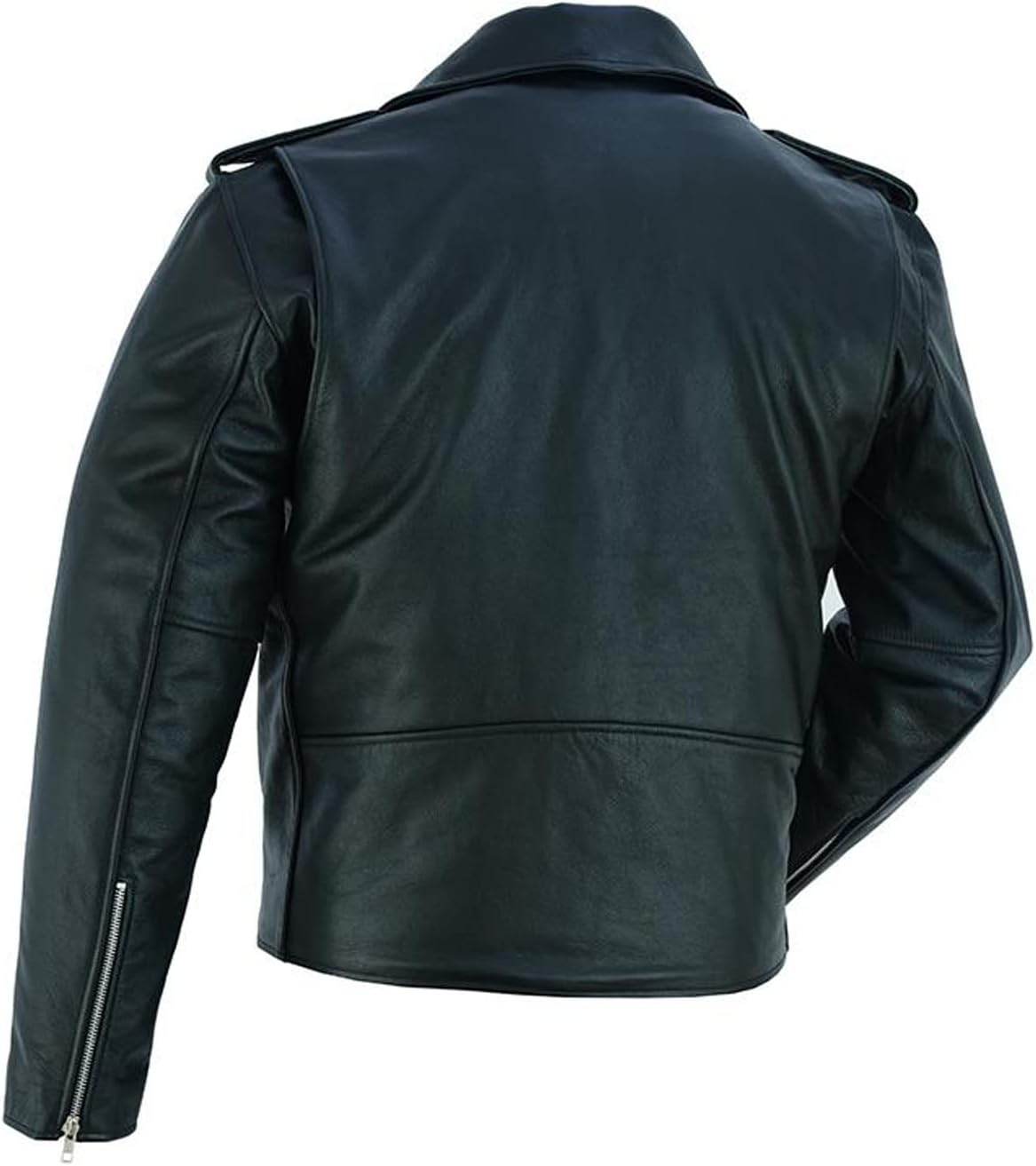Men’s Classic Plain Sided Motorcycle Leather Jacket