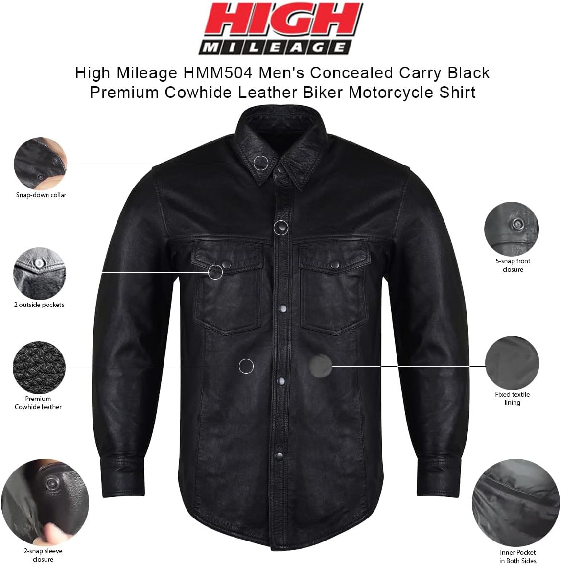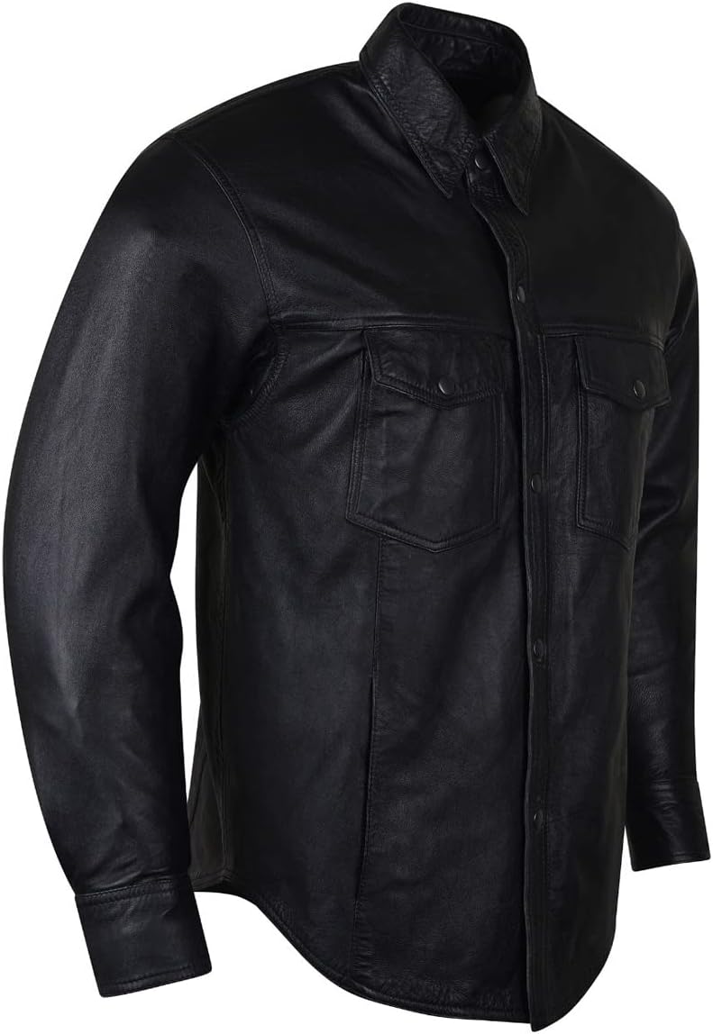 Be the first to review “Men’s Concealed Carry Black Premium Cowhide Leather Biker Motorcycle Shirt”