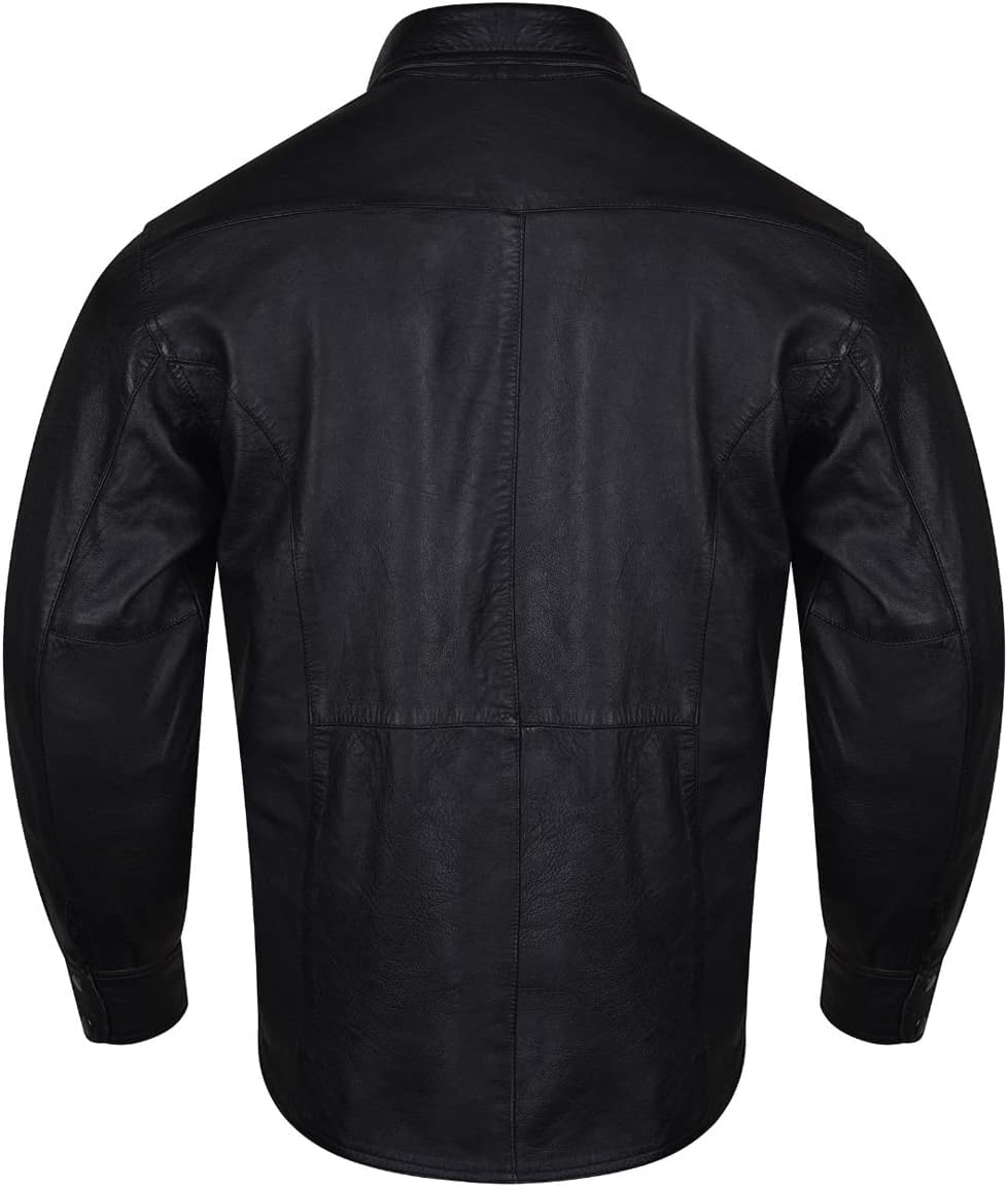 Men’s Concealed Carry Black Premium Cowhide Leather Biker Motorcycle Shirt