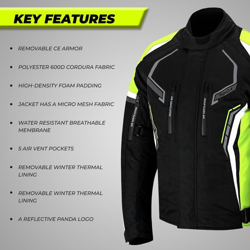 Mens Motorcycle Jacket Hi-Vis Waterproof CE Armored All Season Riding Enduro Dual Sport Cordura Biker Jacket