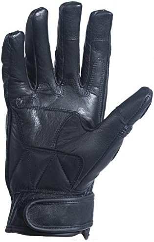Mens premium leather motorcycle gloves with hard knuckles. Gloves have perforated fingers for good ventilation, Leather expansion panels on each finger including thumb, Velcro strap at wrist,