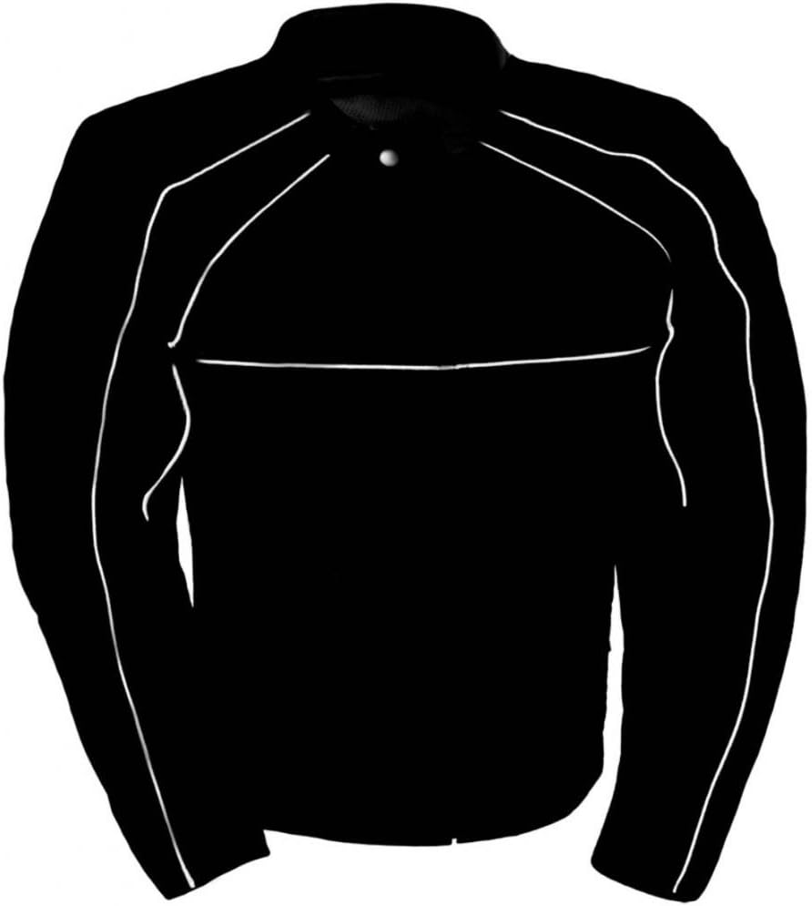 Mens Vented, Hi Night Visible, Scooter Collar Leather Motorcycle Jacket (Black, X-Large)