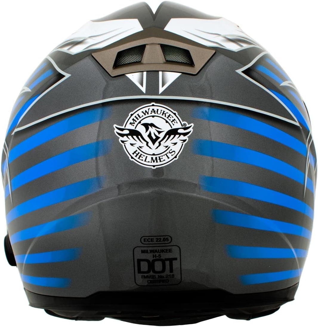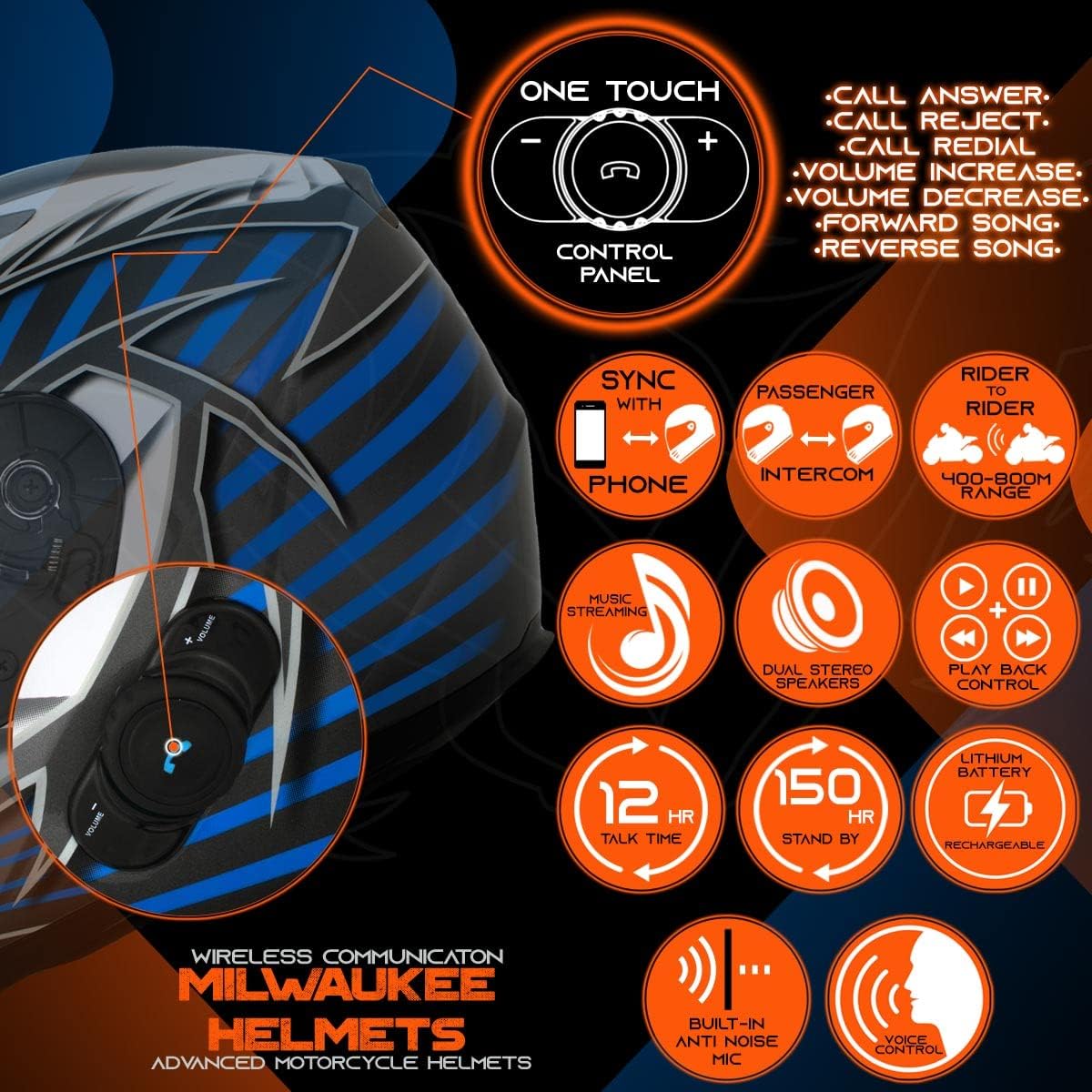 Milwaukee Helmets H512 Titanium and Blue Chit-Chat Black Full Face Motorcycle Helmet w/ Intercom – Built-in Speaker and Microphone for Men / Women