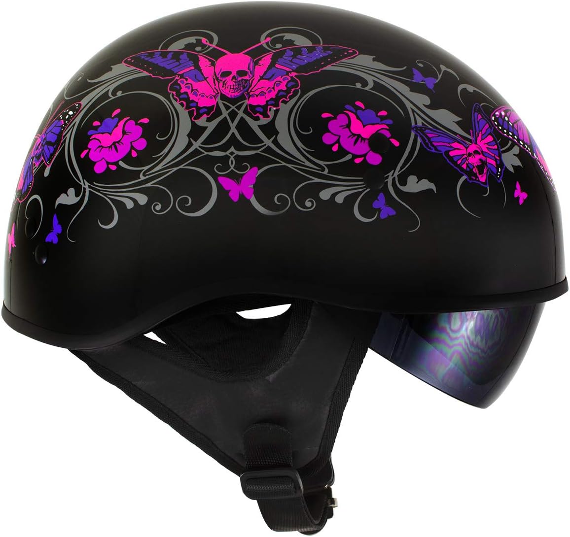 Milwaukee Helmets T72 Gloss Black Pink Butterflies Advanced DOT Helmet for Men and Women with Drop Down Tinted Visor