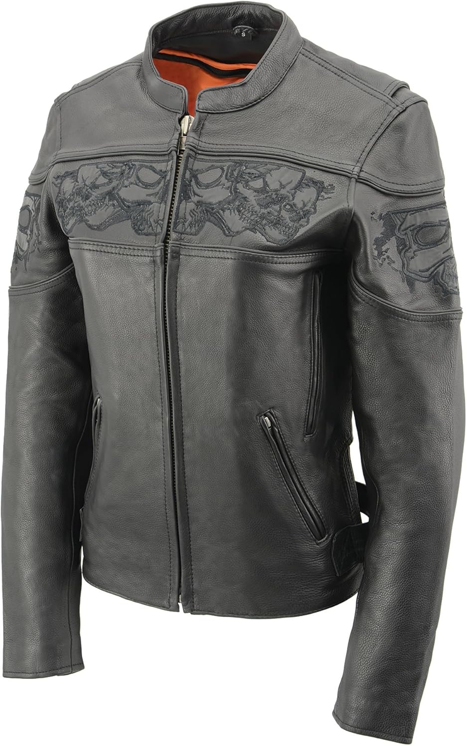 Milwaukee Leather Ladies Reflective Skulls Soft Naked Cowhide Leather Motorcycle Jacket MLL2540