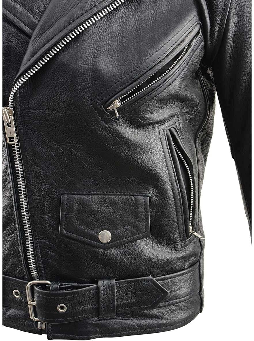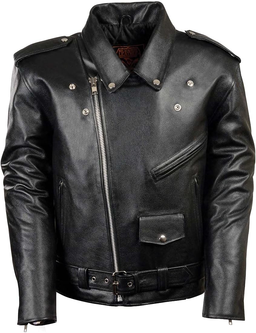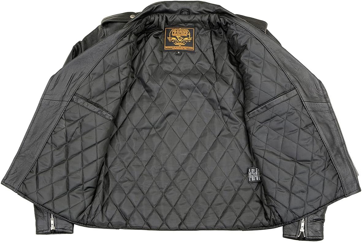 Milwaukee Leather LKM1781 Men’s The Legend Classic Police Style Black Leather Motorcycle Jacket w/Quilted Liner