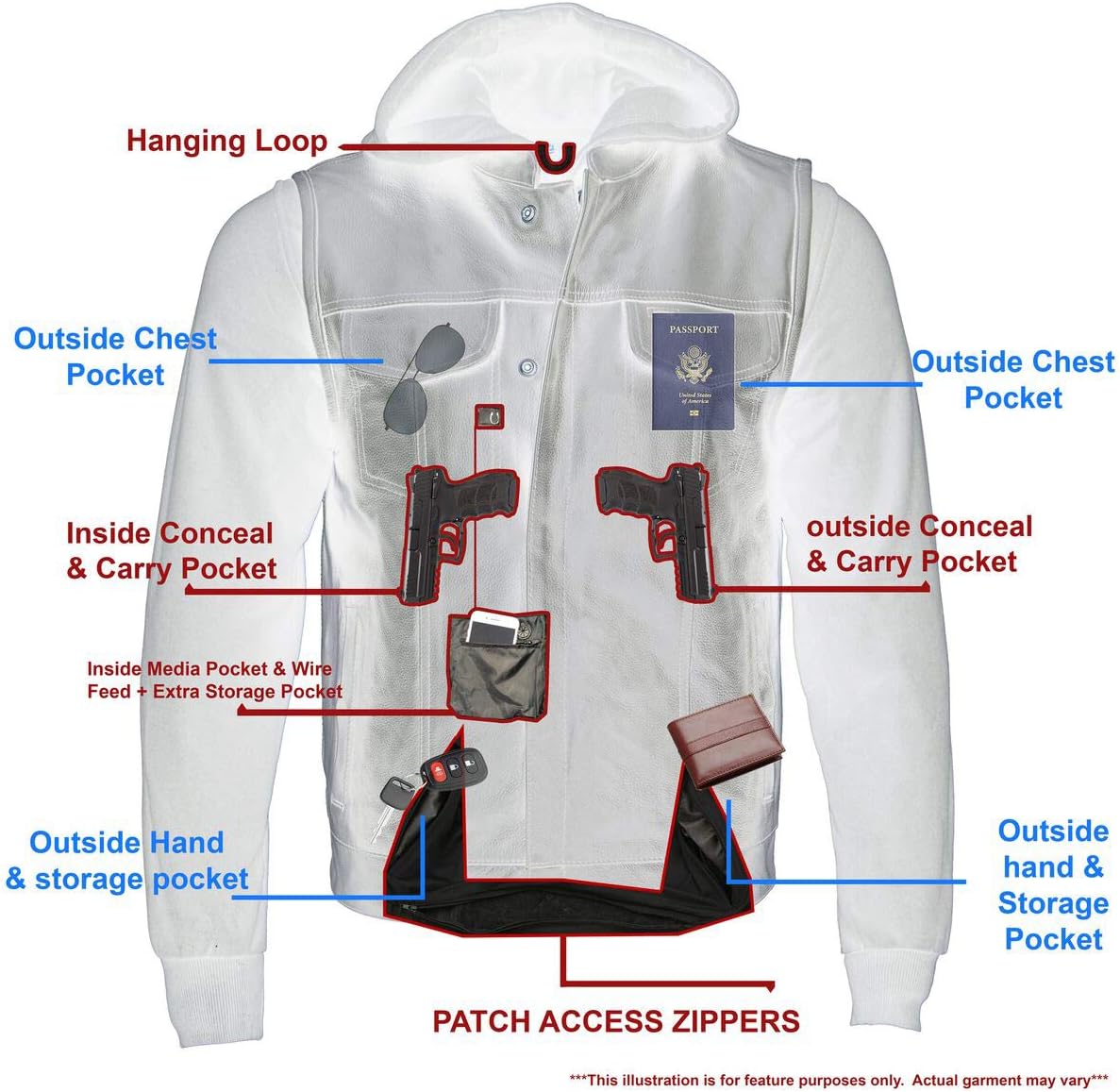 Milwaukee Leather LKM3714 Men’s Black Club Style ‘2 in 1’ Zipper Vest with Full Sleeve Hoodie and Quick Draw Pocket