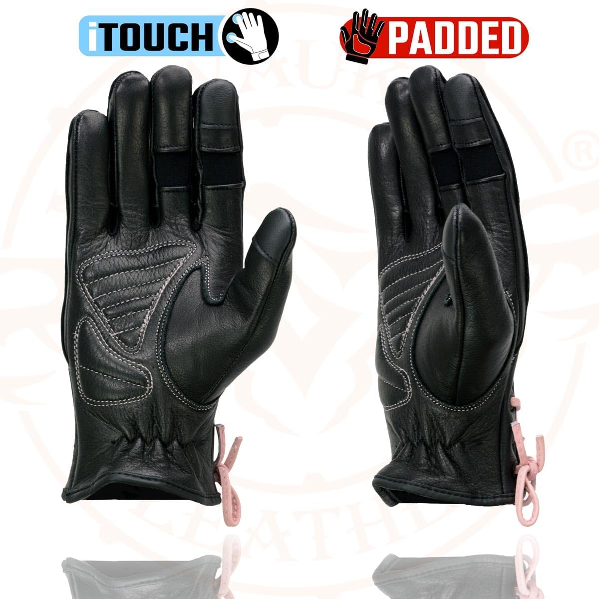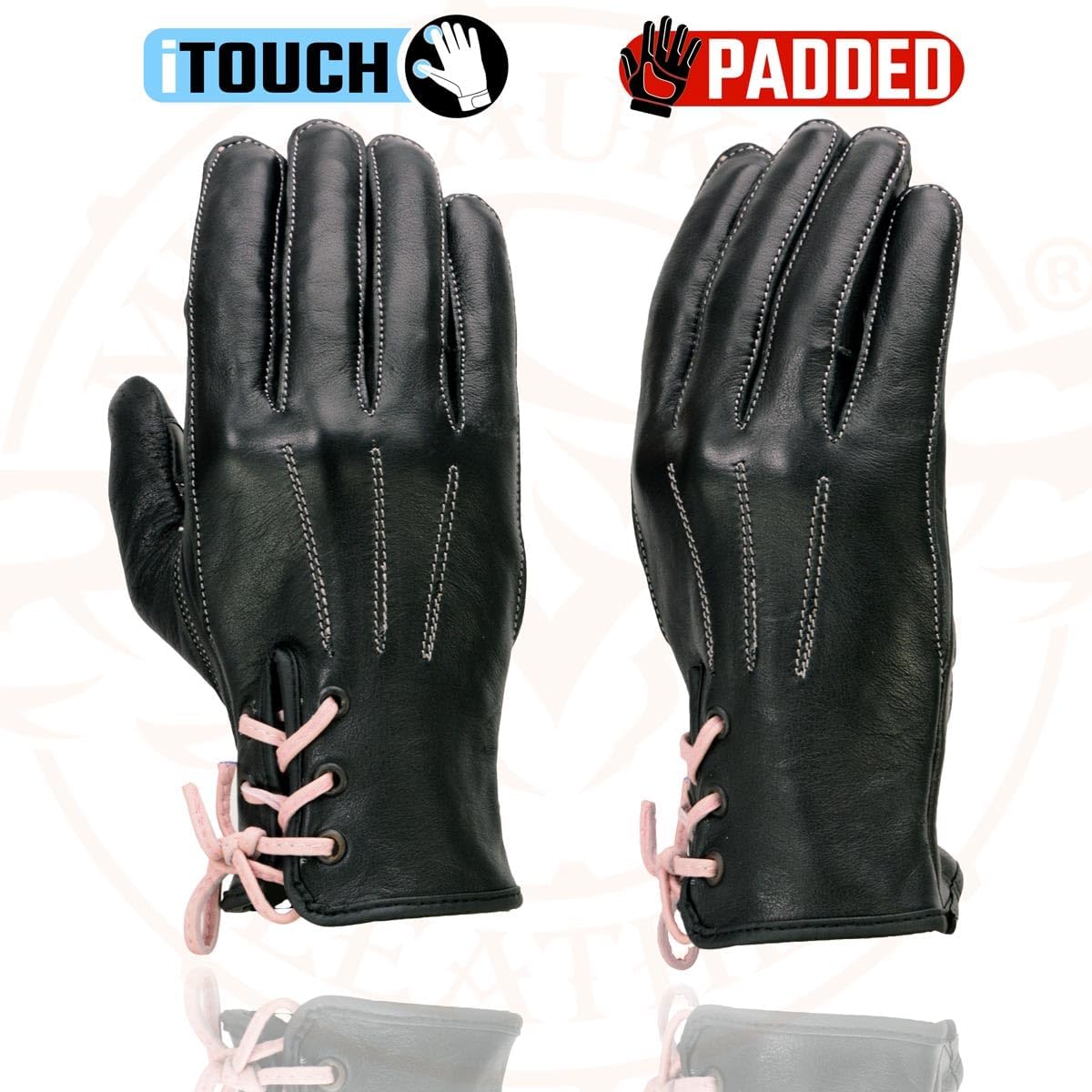 Milwaukee Leather MG7772 Women’s Black/Fuchsia ’I – Touchscreen Compatible’ Laced Wrist Motorcycle Hand Gloves W/Gel Palm