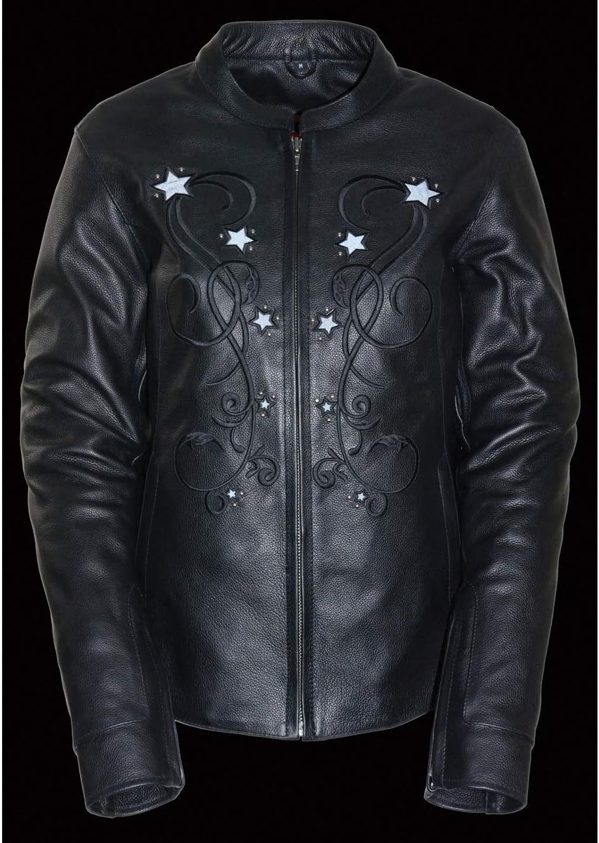 Milwaukee Leather ML2500 Women’s Reflective Star Riveted Black Leather Jacket