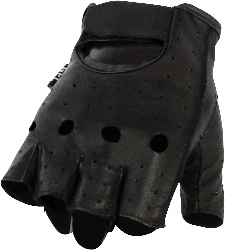 Milwaukee Leather SH195 Men’s Black Leather Perforated Gel Padded Palm Fingerless Motorcycle Hand Gloves W/ ‘Open Knuckle’