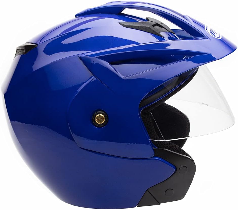 MMG (Model 20) Motorcycle Open Face Helmet DOT Street Legal – Flip Up Clear Visor (M, Shiny Blue)