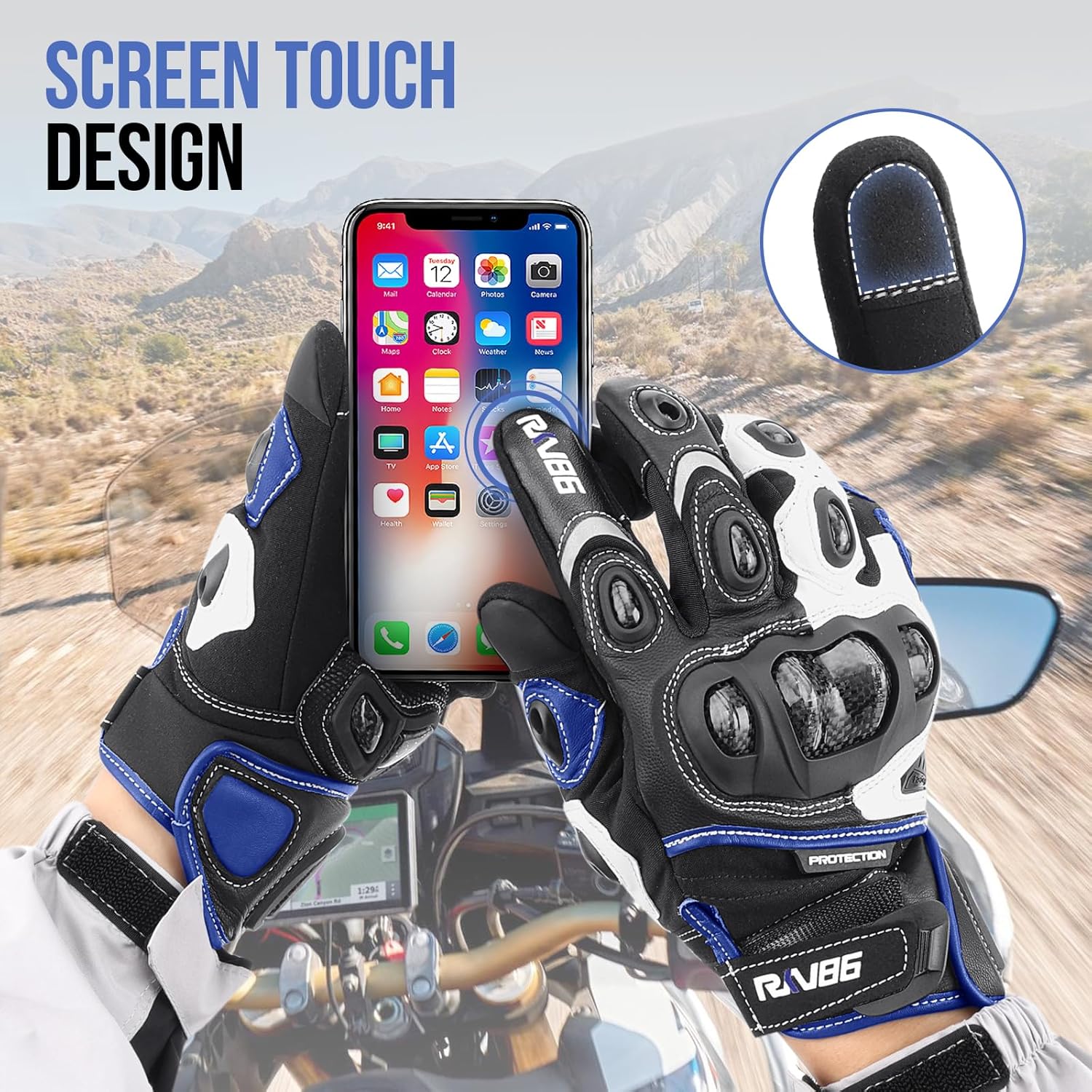 Motorcycle Gloves Genuine Leather Riding Gloves Breathable Motorbike Gloves with Carbon Fiber Protection Touchscreen Cycling Gloves for Outdoor Sports Racing Riding