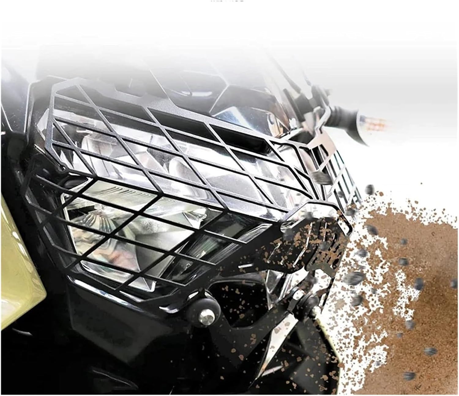 Motorcycle headlight grille cover. When you enjoy extreme speed, the cover will help you protect the headlights and get a clear view.