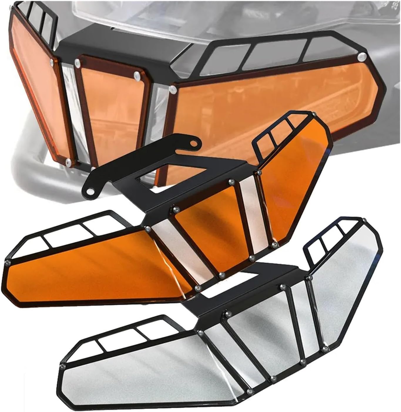 Motorcycle headlight grille cover. When you enjoy extreme speed, the cover will help you protect the headlights and get a clear view.