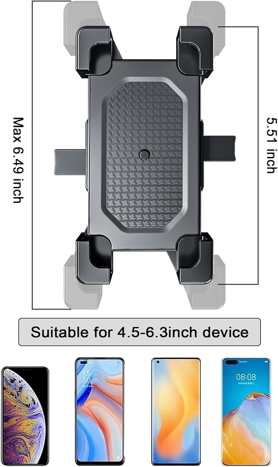 🚲Sturdy and Safe – A special shape of this motorcycle & bike phone holder grips each corner of your phone tightly. It ensures the safety of your cell phone attached to the bike handlebar even on a bumpy road.
