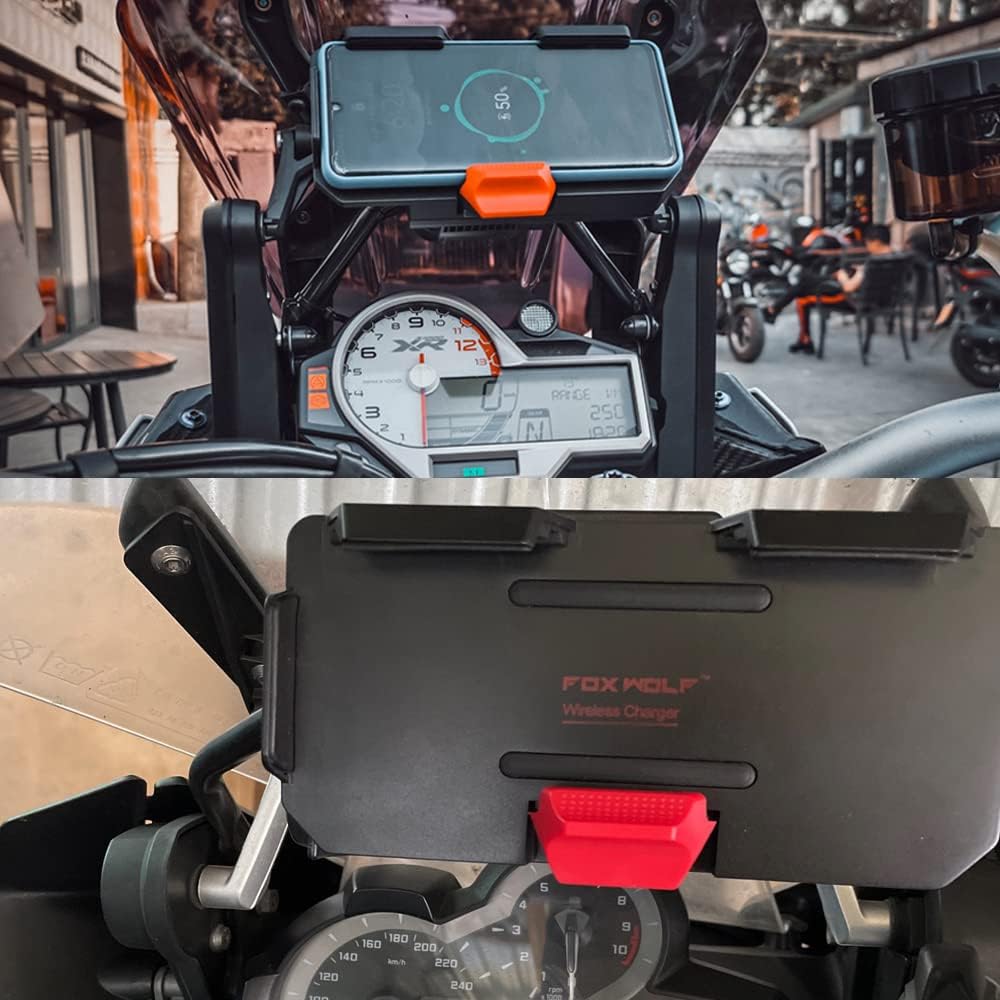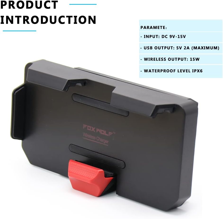 【Support for Intelligent Charging】: The The motorcycle phone mount has intelligent charging function, and the circuit part can provide foreign body detection, overvoltage, overcurrent, overheating, full protection, etc.;This The motorcycle phone mount is compatible with up to 15W wireless charging power.