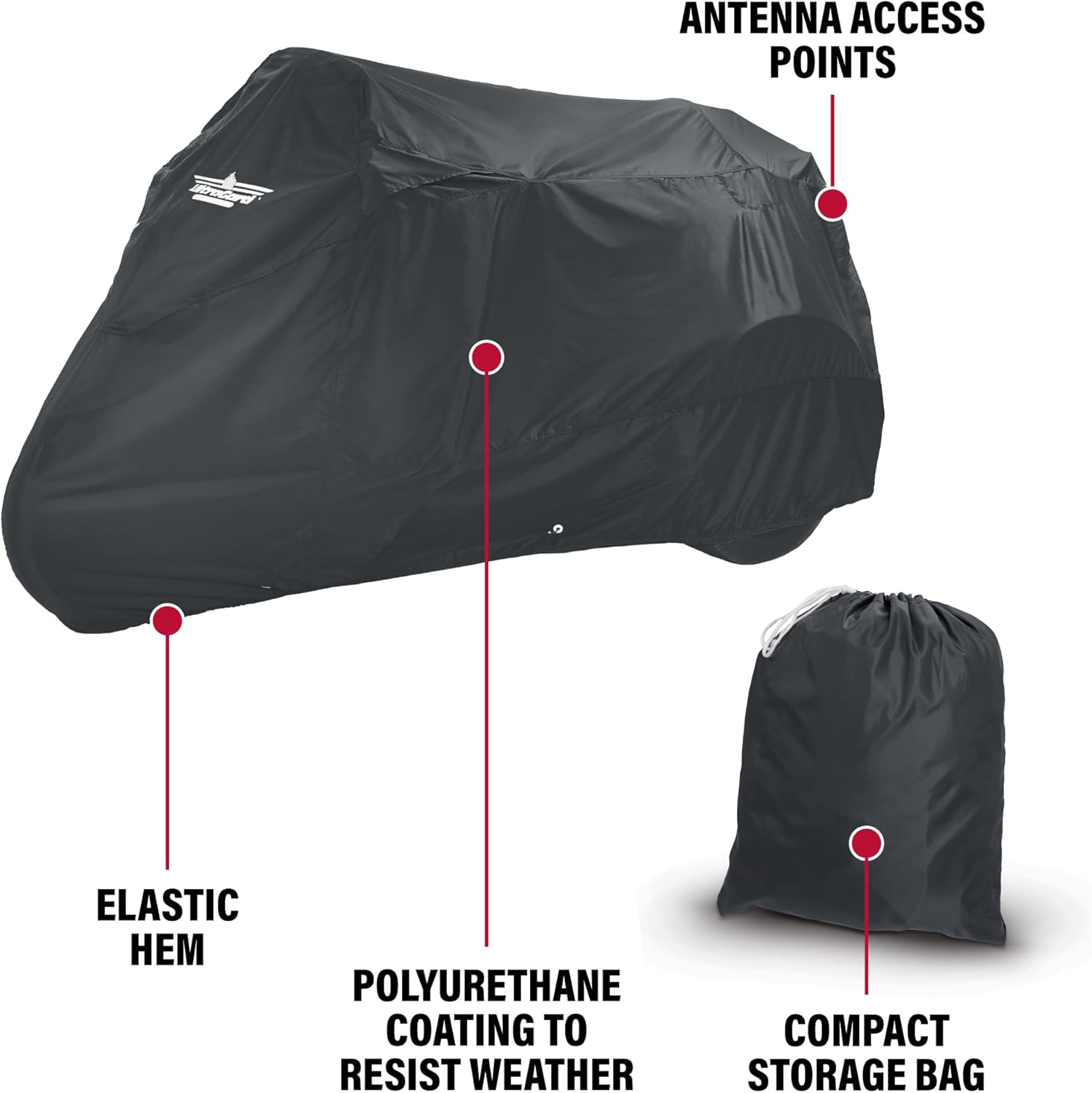 Intelligent Accessory Protection – Our cover isn’t just for your motorcycle; it includes an expandable windshield pocket for specific models and antenna flaps. Plus, the built-in windshield liner adds an extra layer of care