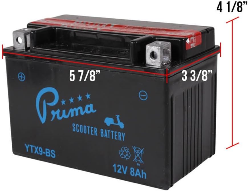 Prima Battery (YTX9-BS), Compatible with Genuine Hooligan & Blur, SYM HD200
