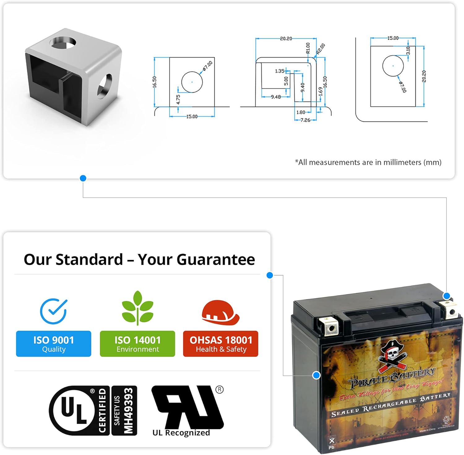 Rechargeable YTX20HL-BS High Performance Power Sports Battery – AGM – 310 CCA – Maintenance Free – Replacement for Motorcycles