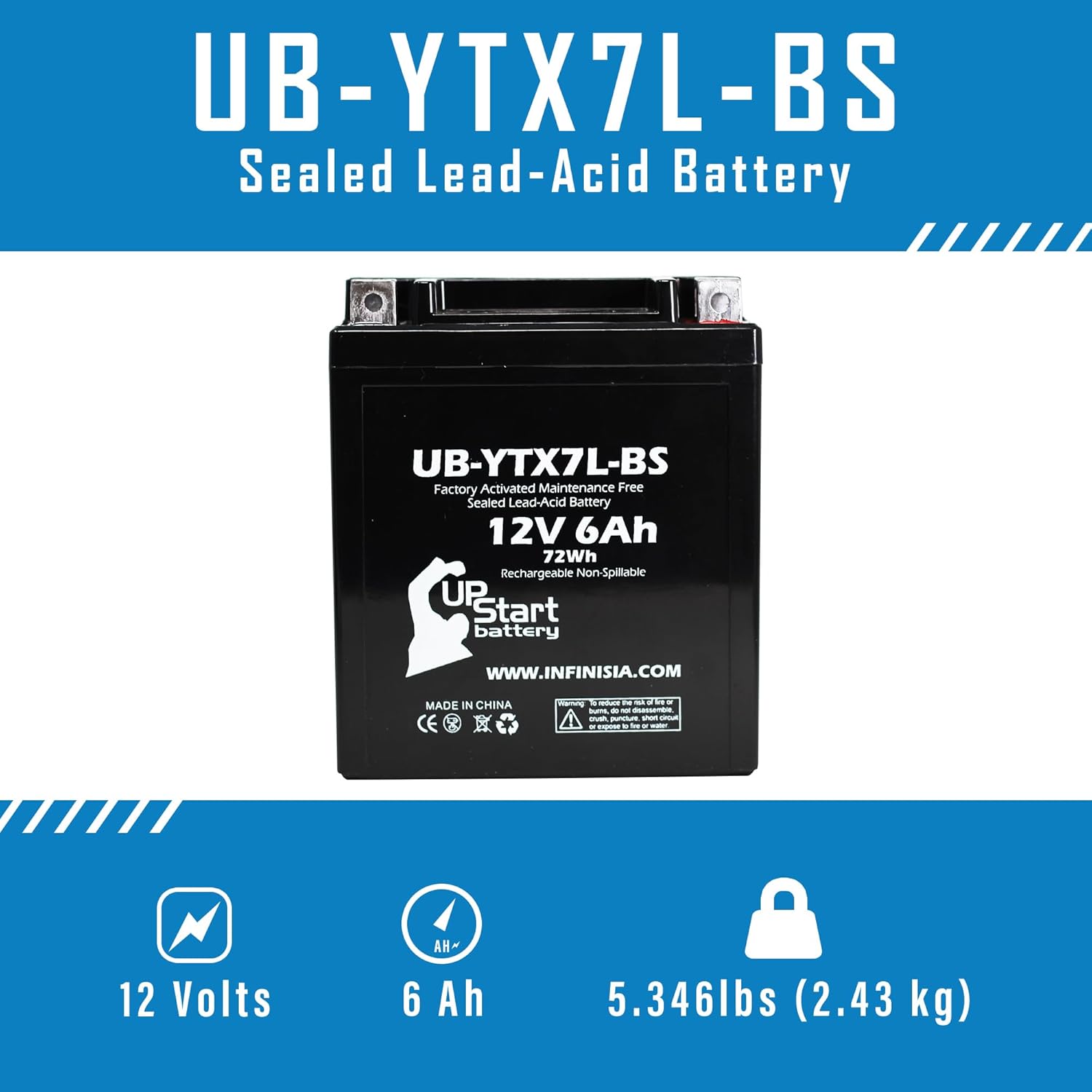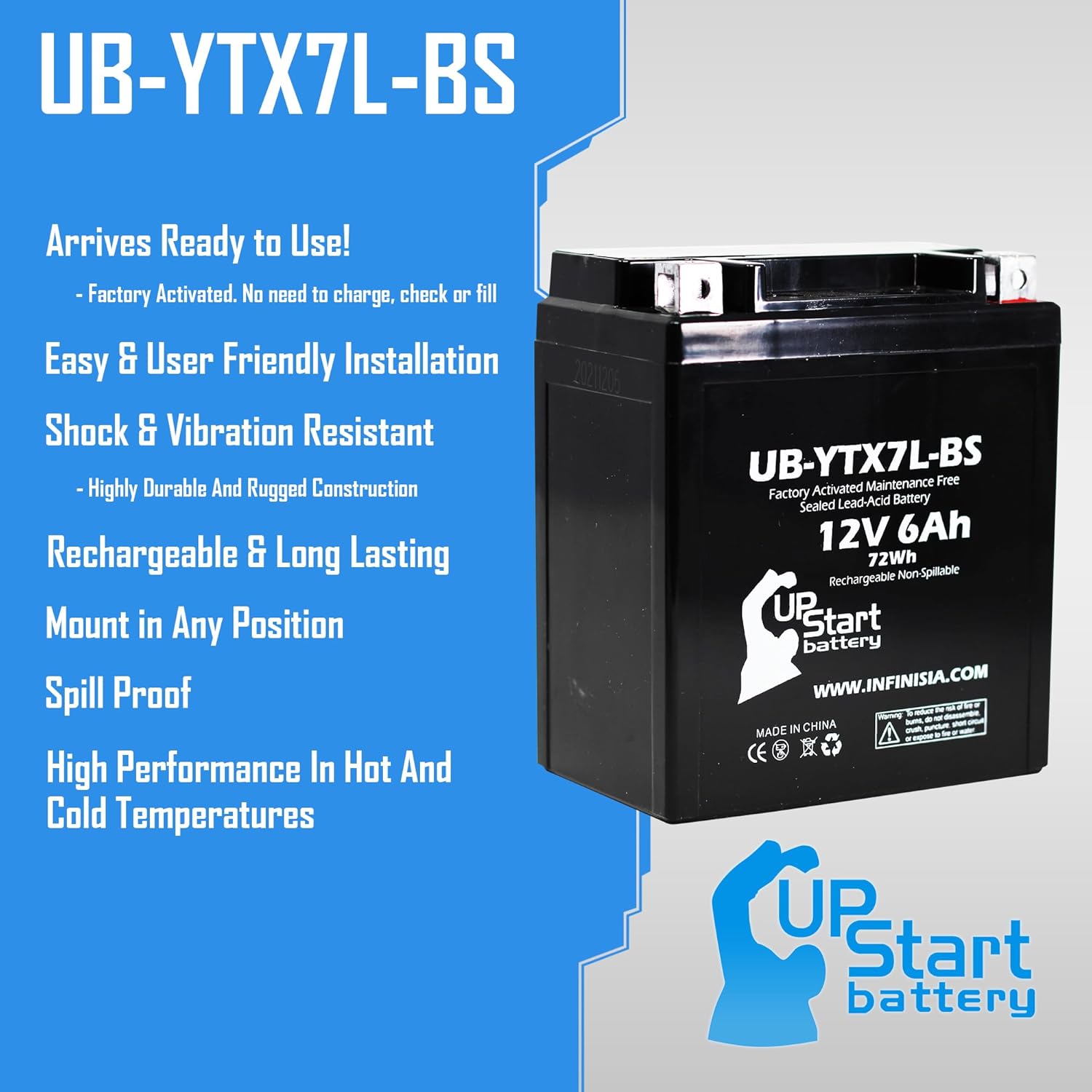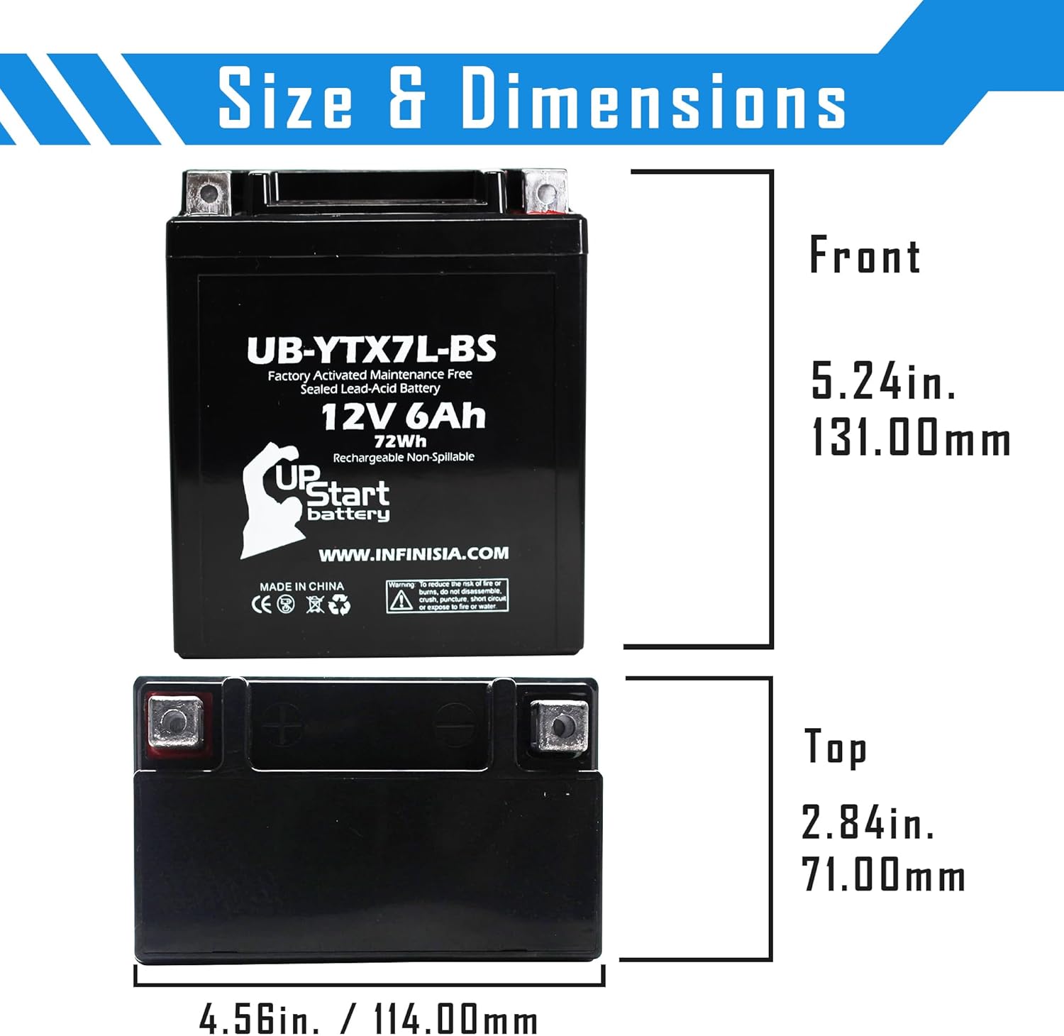 Replacement for 2003 Kawasaki EX250 Ninja 250CC Factory Activated, Maintenance Free, Motorcycle Battery – 12V, 6Ah, UB-YTX7L-BS
