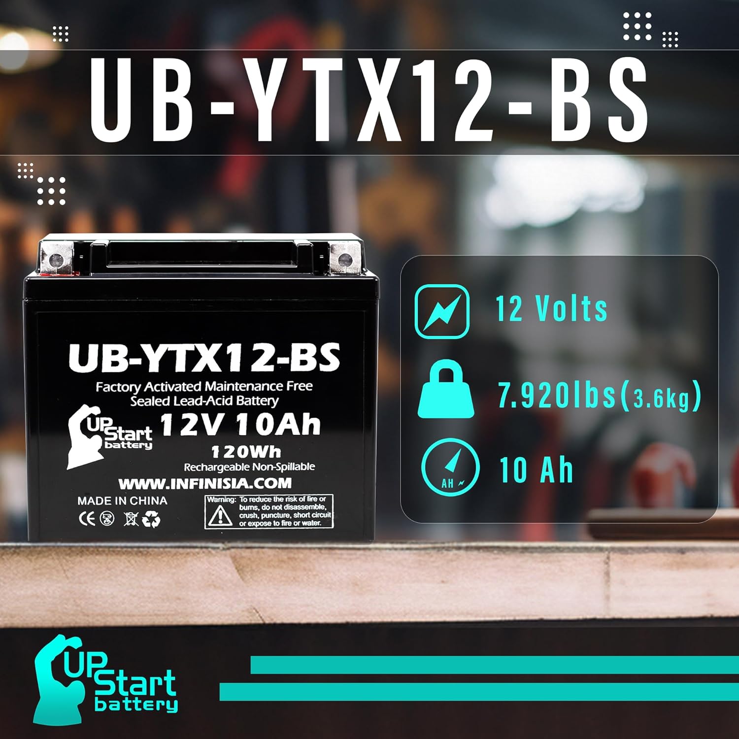 Replacement for 2005 Yamaha YZF600R 600 CC Factory Activated, Maintenance Free, Motorcycle Battery – 12V, 10Ah, UB-YTX12-BS
