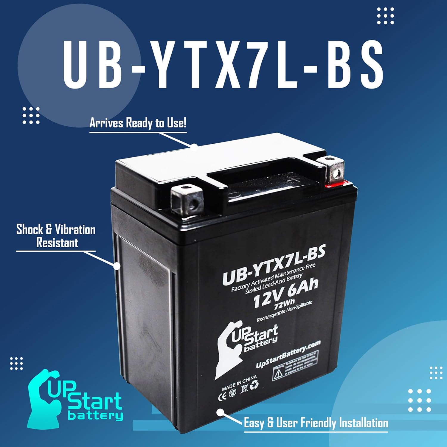 Replacement for 2012 Honda CBR250R 250CC Factory Activated, Maintenance Free, Motorcycle Battery – 12V, 6Ah, UB-YTX7L-BS