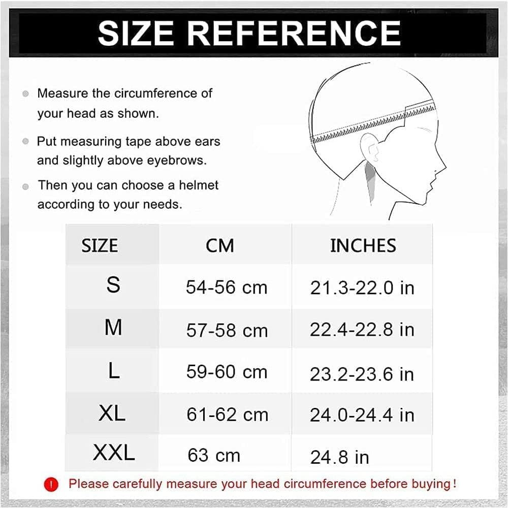 MEASURING TIPS: Special Note: For an accurate head measurement, wrap a soft (tailor) measuring tape horizontally around your head about 1inch above your eyebrows. If your head measurement is between two different sizes on the helmet size chart, if you like the head and helmet close to each other, take the smaller size, if you like it looser, take the larger size The yardage of one point.